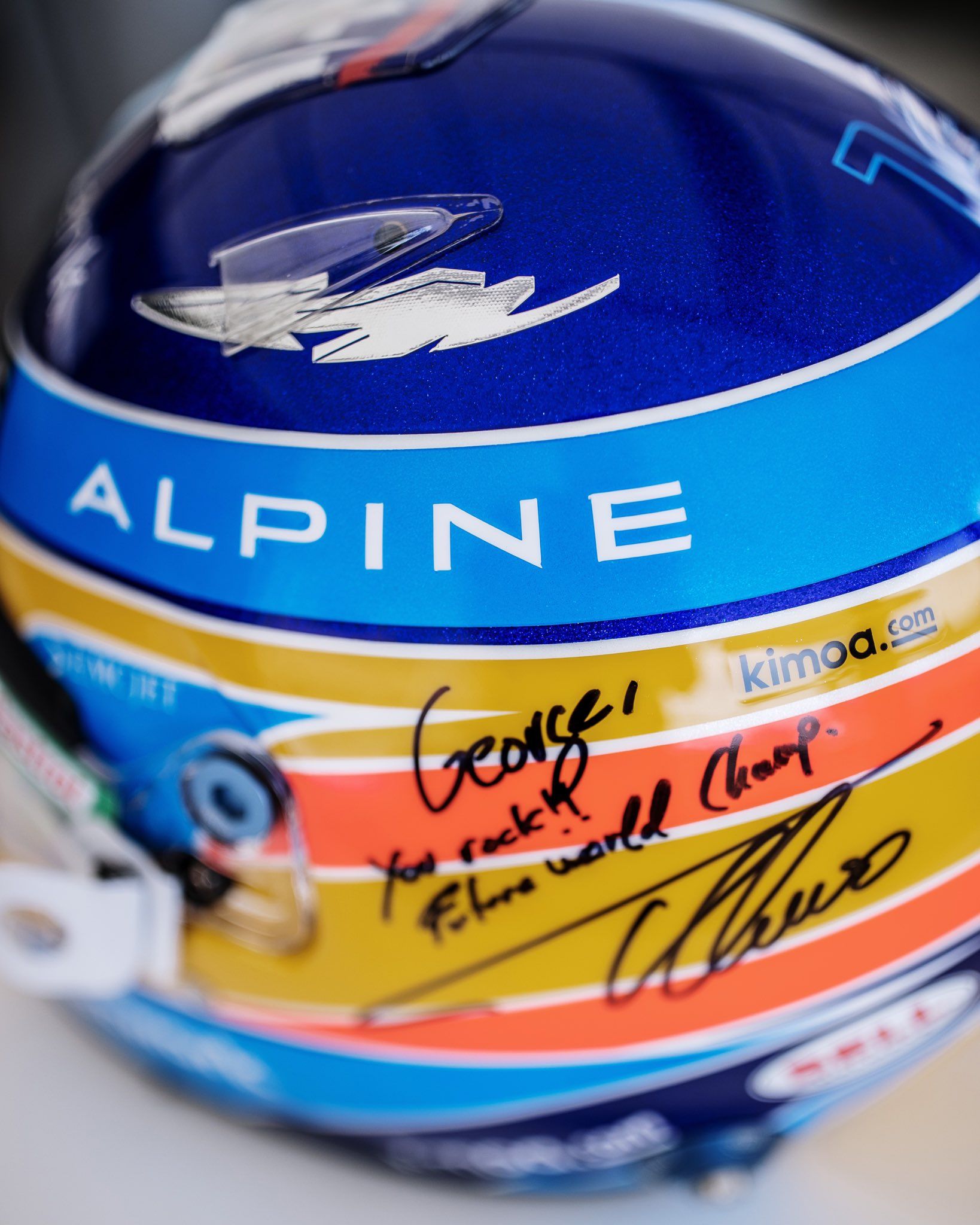“It was the right call, but it was a surprise when I saw the red colour,” summed up Alonso. Post-race, the Spaniard and Williams’ Russell had a little helmet swap ceremony, with the former signing with a message “George, you rock!! Future World Champ”, for the Brit.