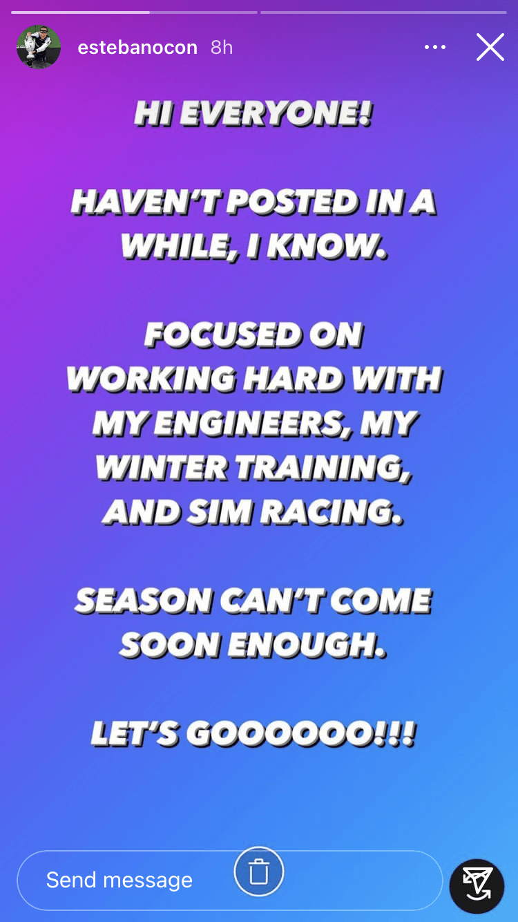 Co-incidently, teammate Ocon too posted on Tuesday about his behind the scenes work with his engineers in preparation for the 2022 F1 season, while also undertaking his winter training alongside some sim racing which he isn’t broadcasting on any platform.