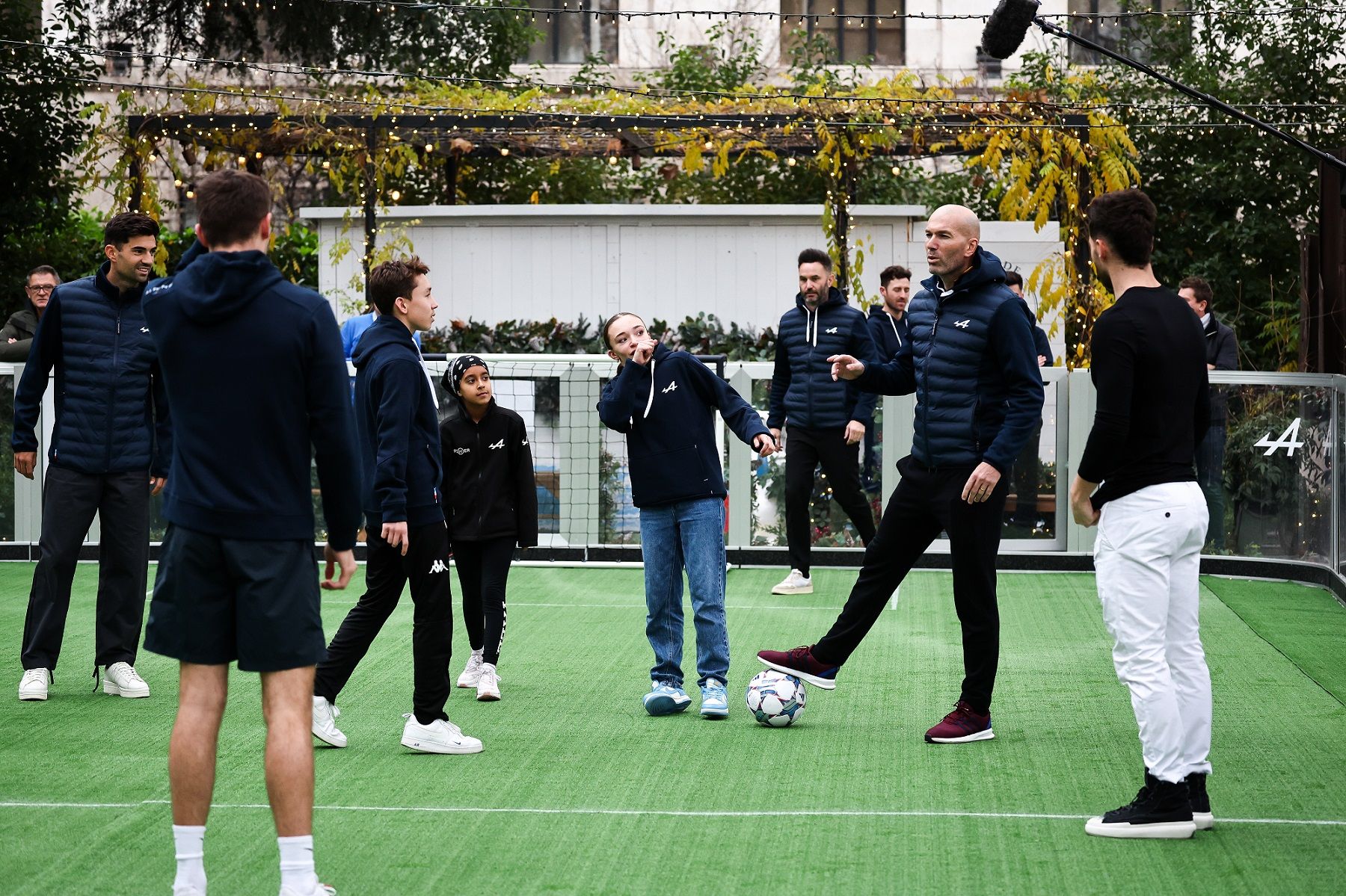 Following the stadium tour, Zidane, along with Esteban, Pierre, Alpine’s young drivers and the two 2023 CEMA placement winners, took to A110s to make the short journey across the city to a karting event. Zidane took part, jumping behind the wheel of an electric go-kart, and received guidance and tips from Lisa Billard and Sukhmani Khera, two of Alpine’s Rac(H)er drivers who currently compete in international karting. After that, it was a complete role reversal, with Zidane hosting a light-hearted football match between all the Alpine drivers.