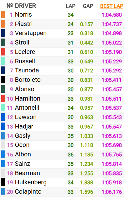 Ferrari’s Lewis Hamilton rounded out the Top 10 ahead of Antonelli. The pair of Visa Cash App RB of Liam Lawson and Isack Hadjar slotted in 12th and 13th. The Kiwi had a bit of a tough start after an issue with the steering wheel, which needed to be replaced to continue on.