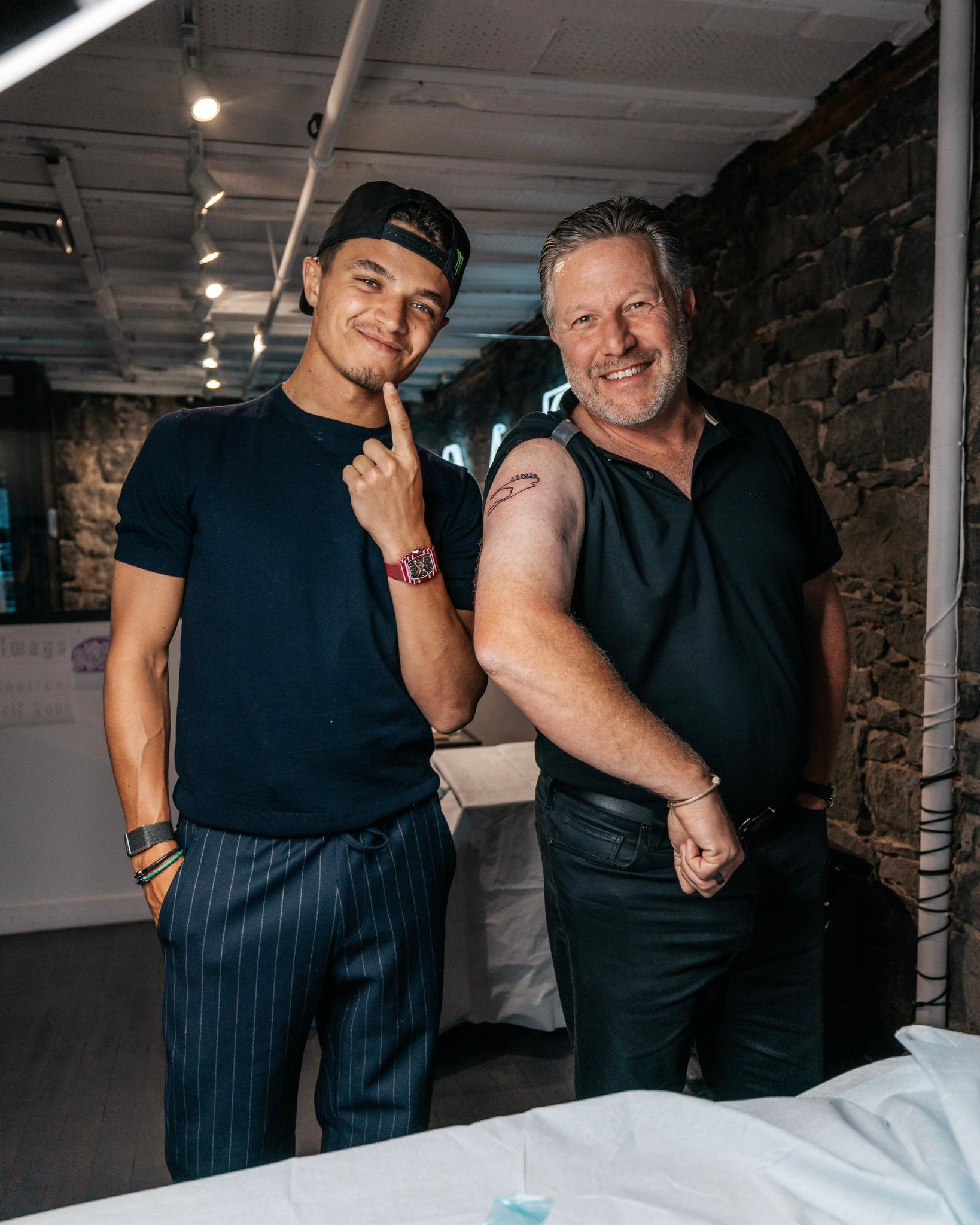 “Yep, I did it again,” wrote Brown. “Another tattoo, this time for our win in Miami, and Lando’s first in F1. I have to say, it was just as painful as the first time. Thankfully, Lando was there to give me all the encouragement I needed… not!”