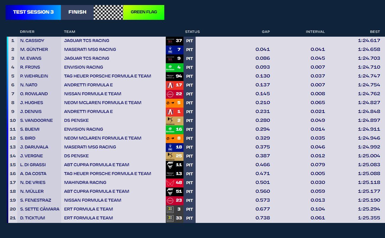 Nick Cassidy kept Jaguar on top on Day 3 of Formula E test in Valencia by just 0.041s over Maximilian Guenther.