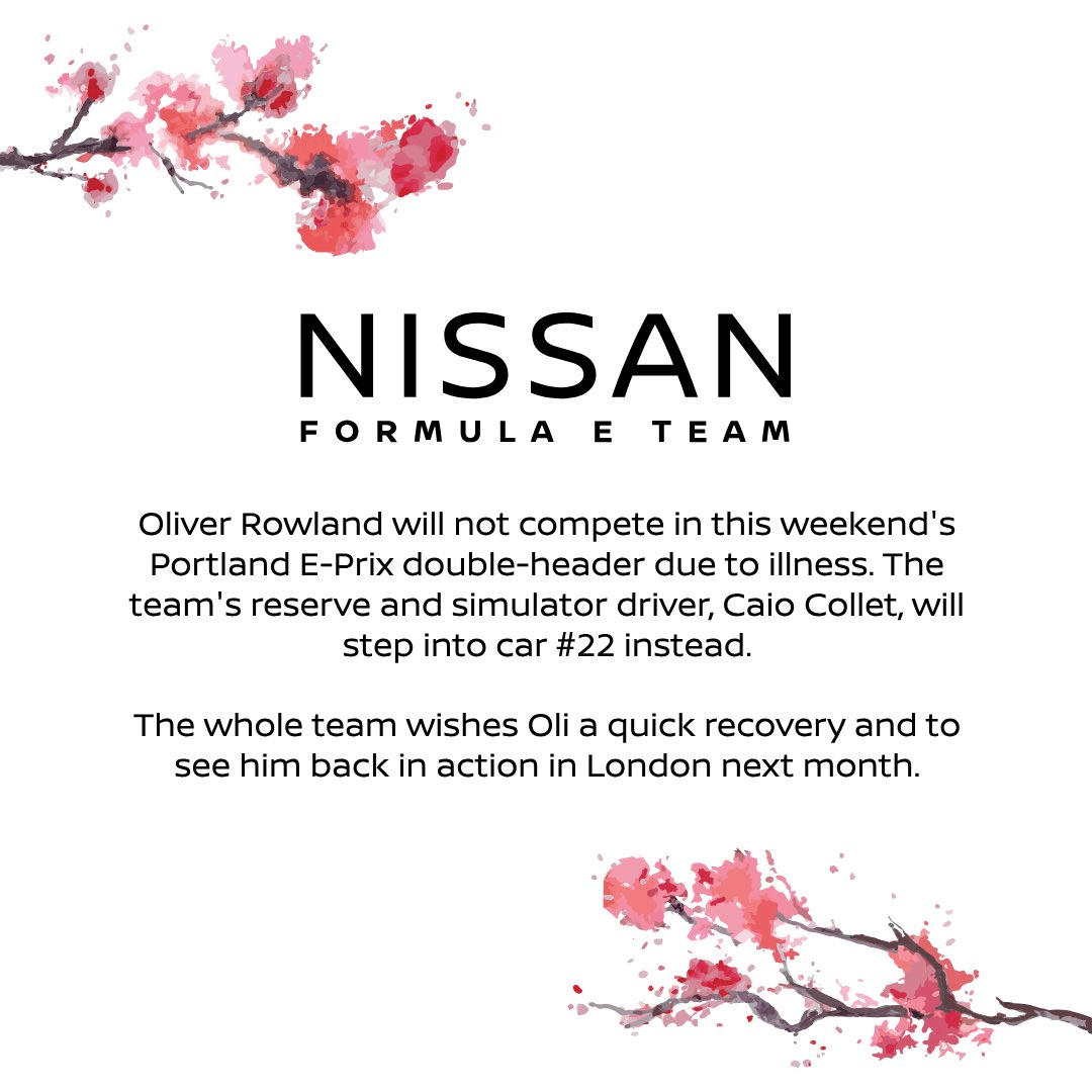 Ciao Collet will make his Formula E debut at Portland double-header for Nissan after sudden illness to Oliver Rowland.