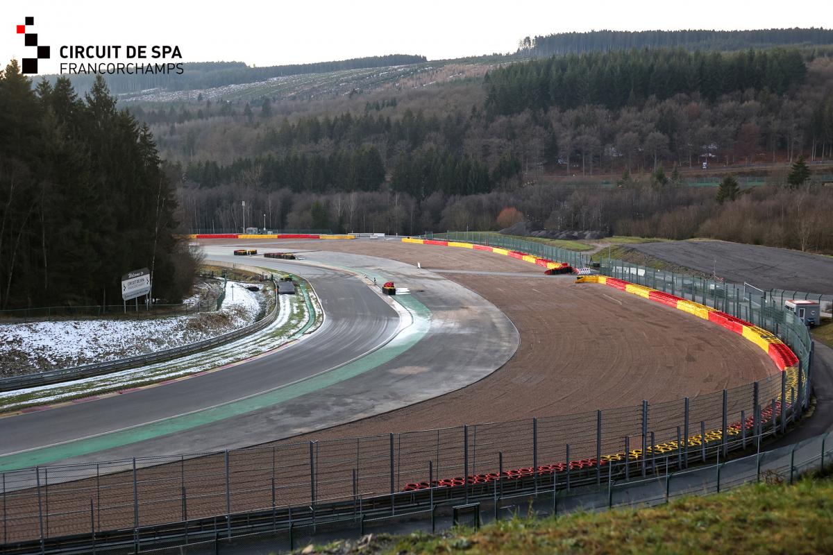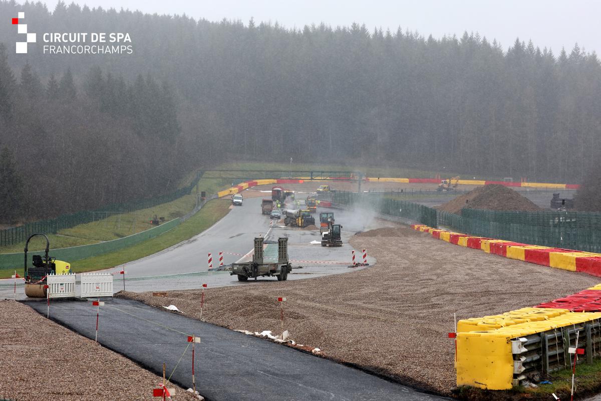 Starting with Spa-Francorchamps, the circuit provided four more photos in the ongoing series of updates of the revamp work. This time they shared photos of gravel trap being added to the run-off at Double Gauche i.e Turn 10 and Turn 11.