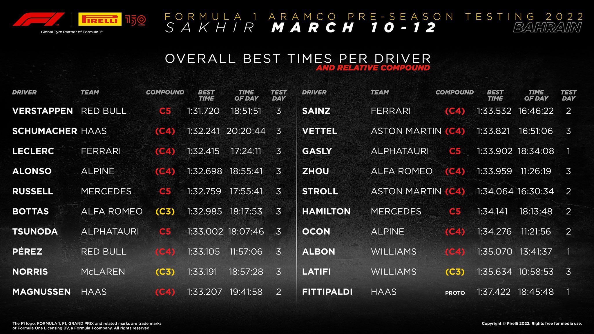 Here’s the time list – best to worst – of all F1 drivers/teams: