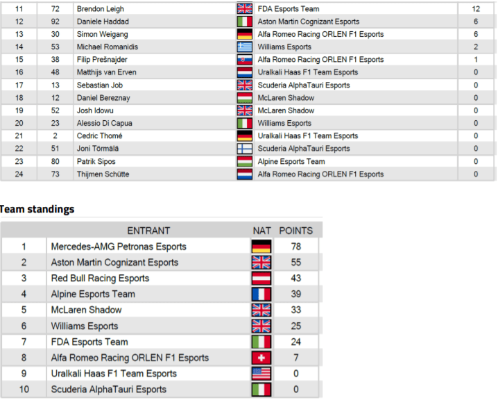 Mercedes has kicked-off the 2021 F1 ESports Series Pro Championship with two wins, while Aston Martin has one in Round 1.