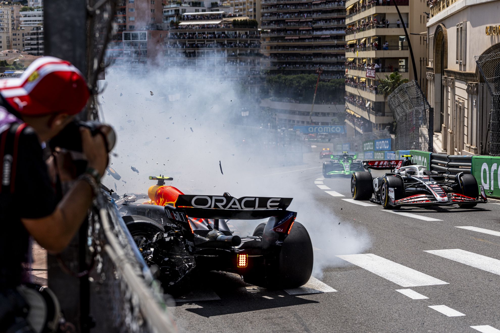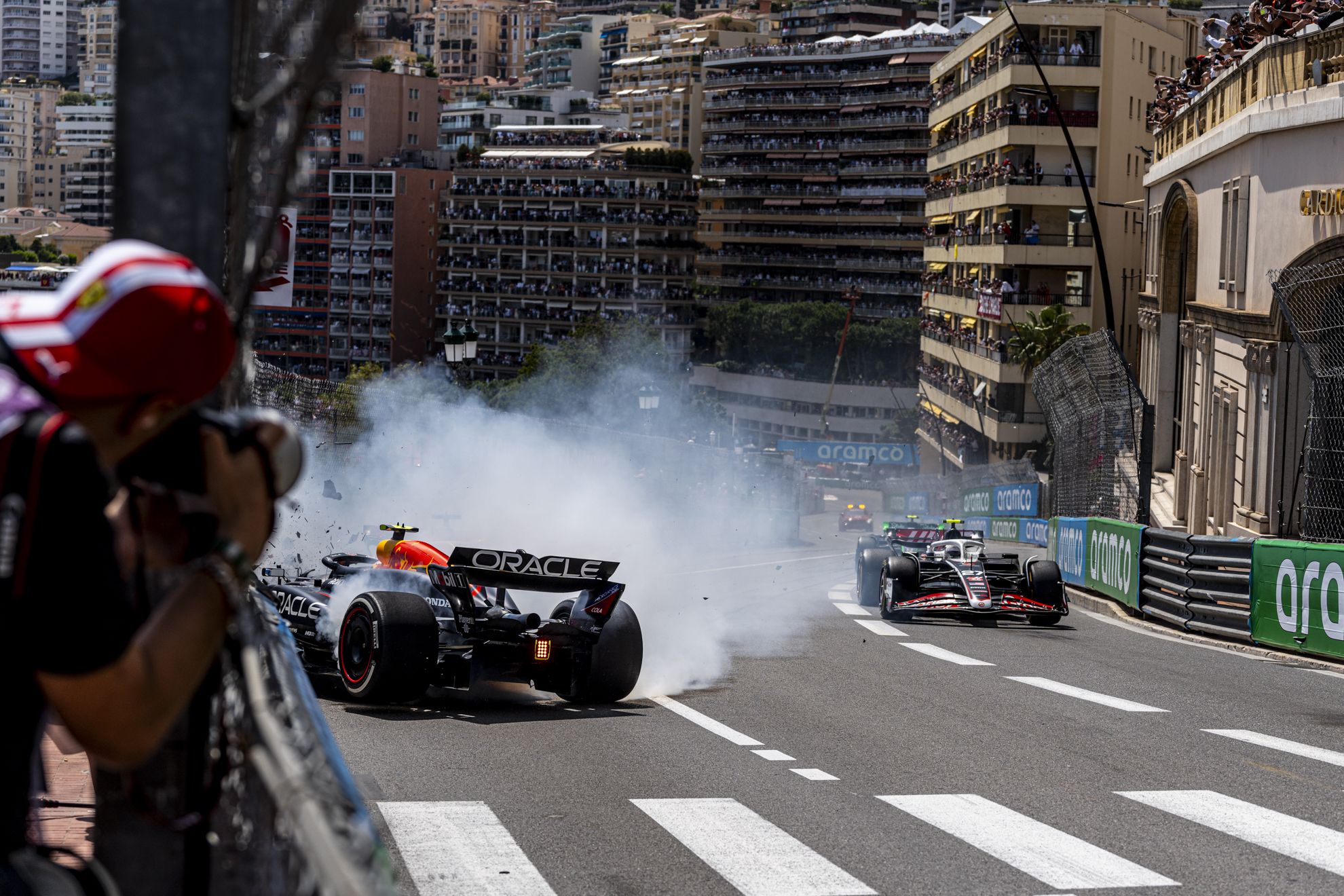 It was indeed a heavy incident on Lap 1 of F1 Monaco GP where Haas’ Kevin Magnussen tried to go inside of Red Bull’s Sergio Perez at Turn 2-3 sequence but their wheels touched and they made contact which resulted in a pile-up to cause a red flag.