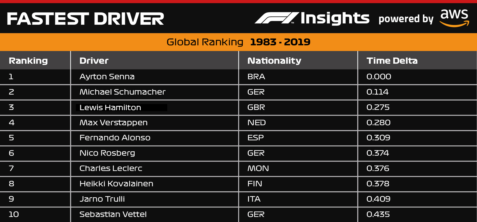 “With the help of AWS we have been able to address something that has been asked for many years and rank drivers by the one raw attribute of pure speed in one flying lap, across the ages, regardless of how good their car is or isn’t.”