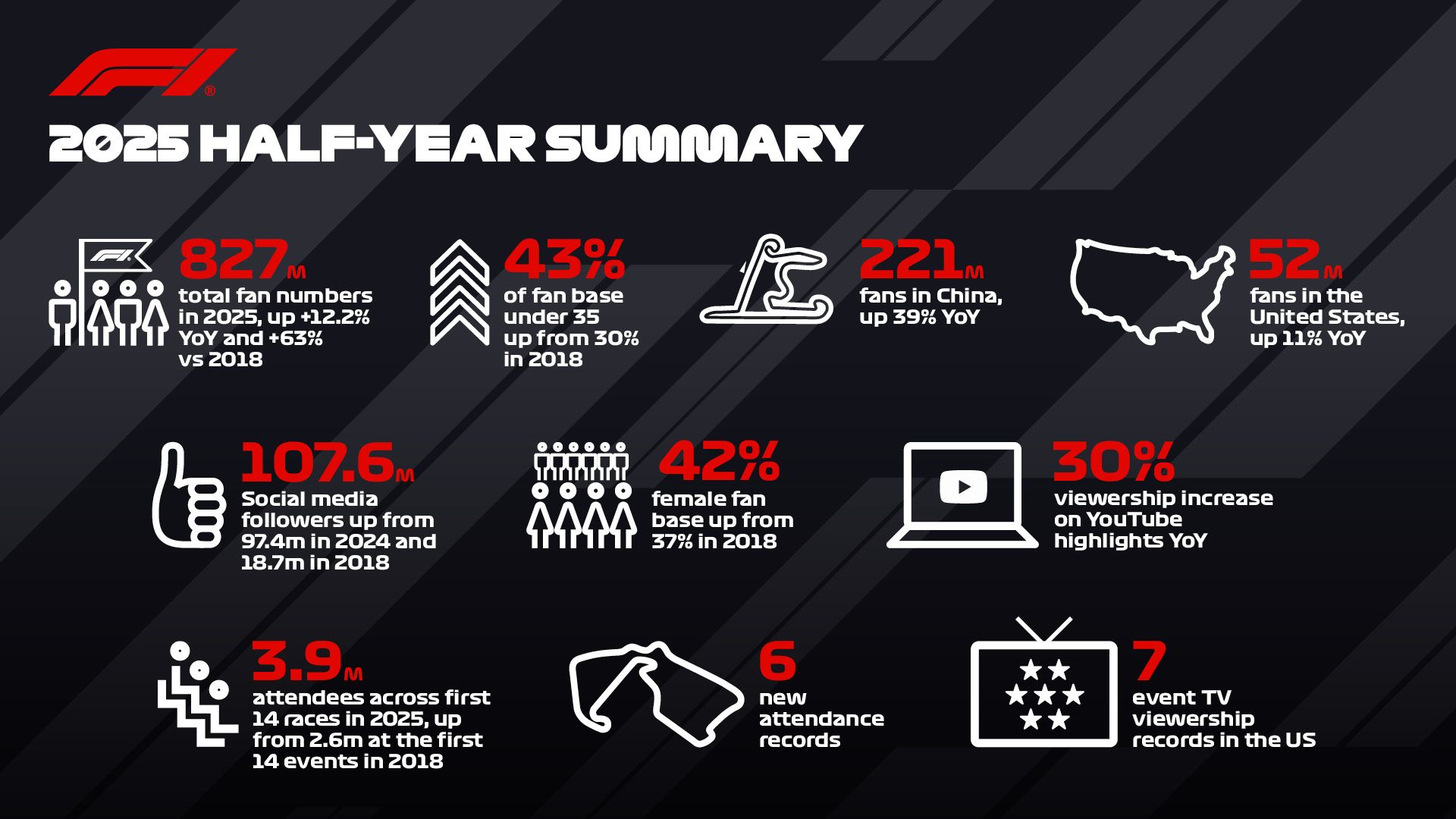 F1 has shared various details of the first half of 2025 season with regards to stats and the happenings, which includes movie.