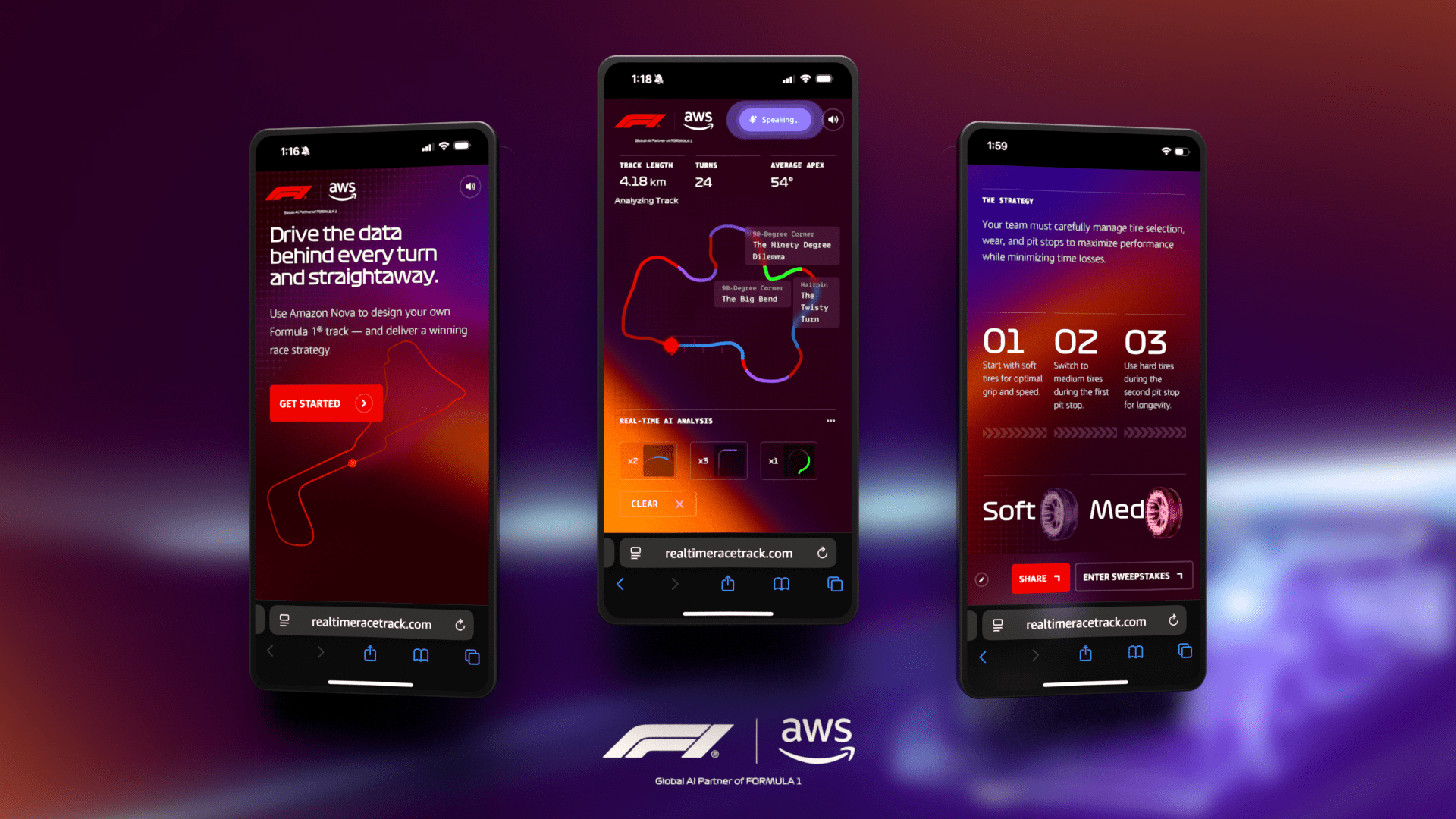 Using AI-powered analysis from Amazon Nova, ‘Real-Time Race Track’ enables fans to design an original, custom race track of any shape and length using their computer’s mouse or by tracing their finger on any touchscreen device. Following the completion of the circuit, each turn and straight on the track is analysed by Amazon Nova, which produces key on-track metrics including top speed and projected lap time, as well as two viable race strategies, further evaluating the optimal pit timing, tyre recommendations and tactical adjustments for various weather scenarios.