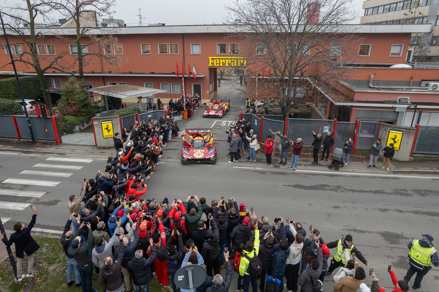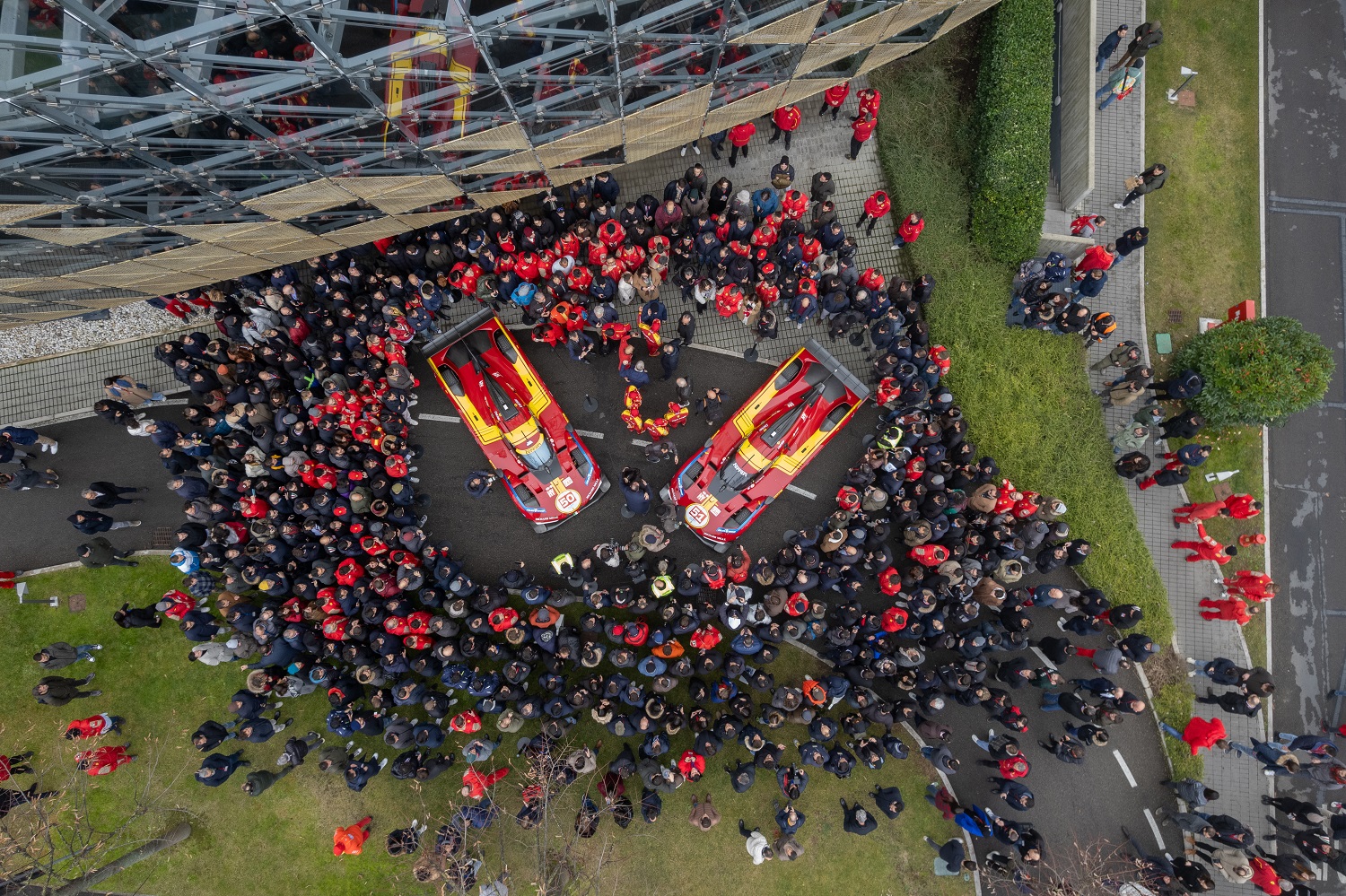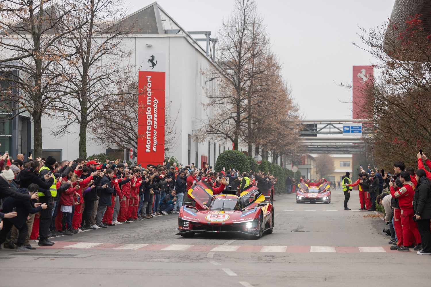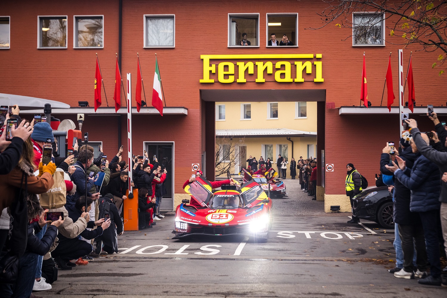 Ferrari celebrates its FIA WEC glory in Hypercar class with a parade in Maranello driving the #50 and #51 499P with all six drivers.