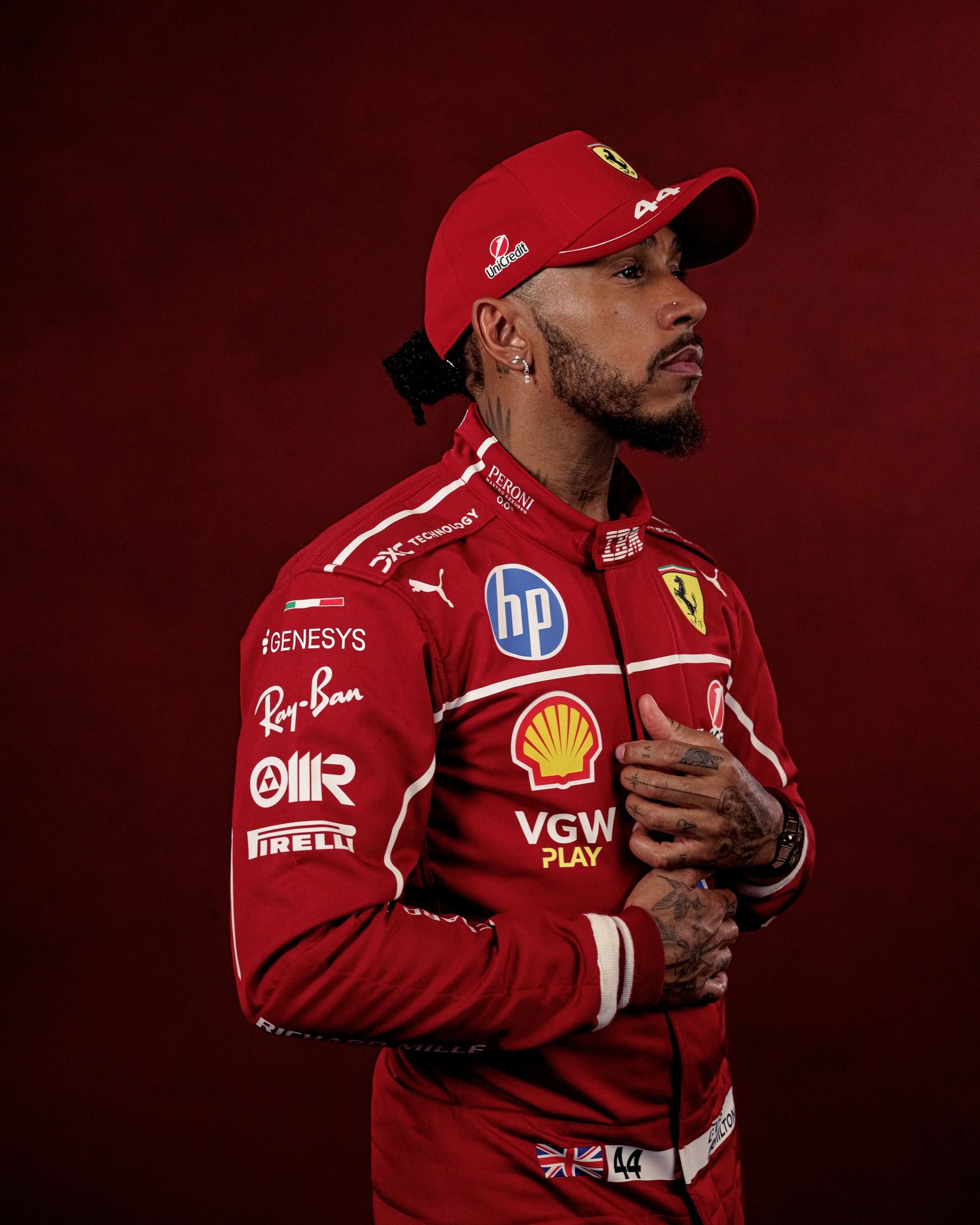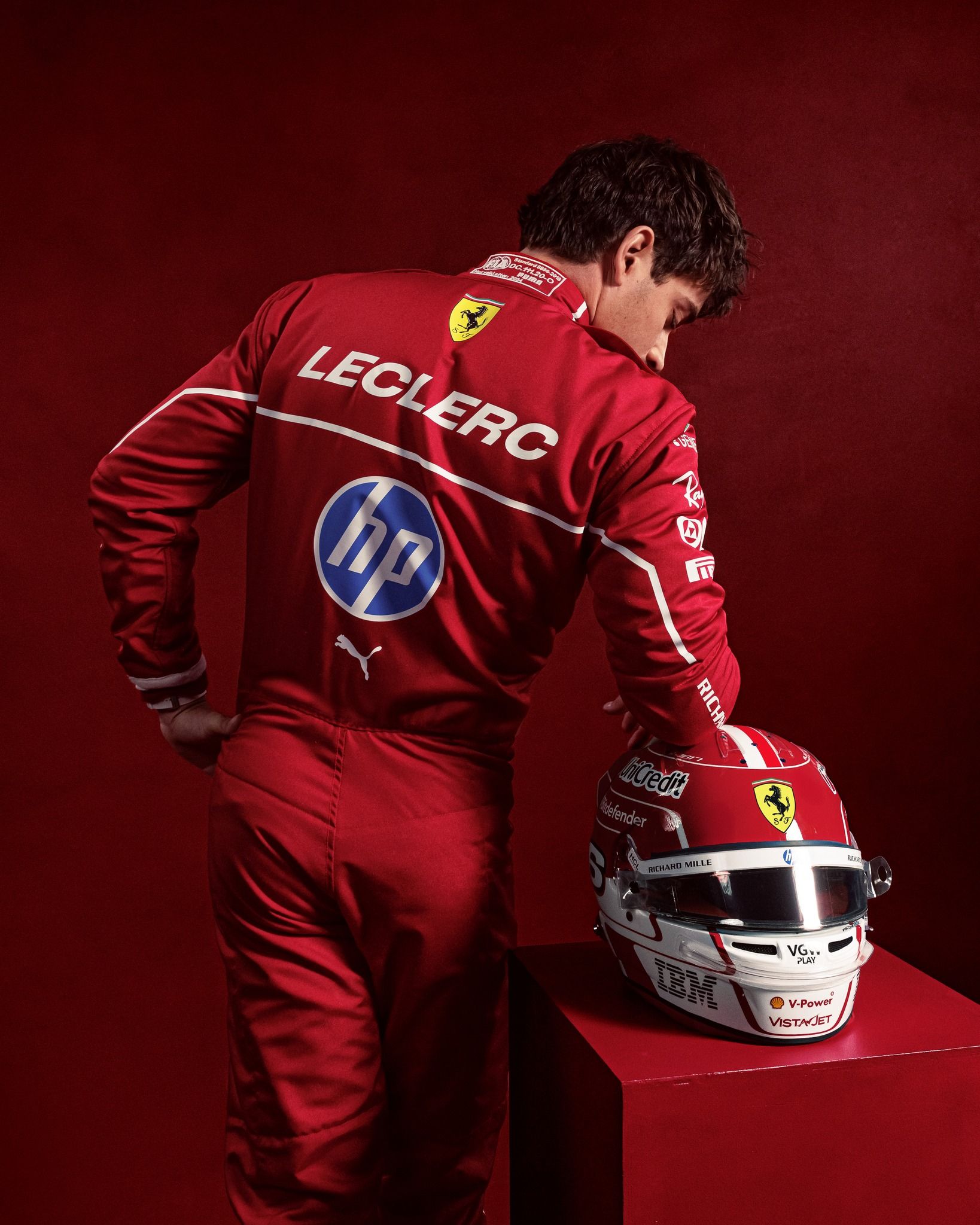 Both Hamilton and Leclerc were photographed wearing their F1 2025 overalls alongside their base helmets that they will use during the course of the season. It is the first of many photoshoots to come of the Brit with Ferrari.