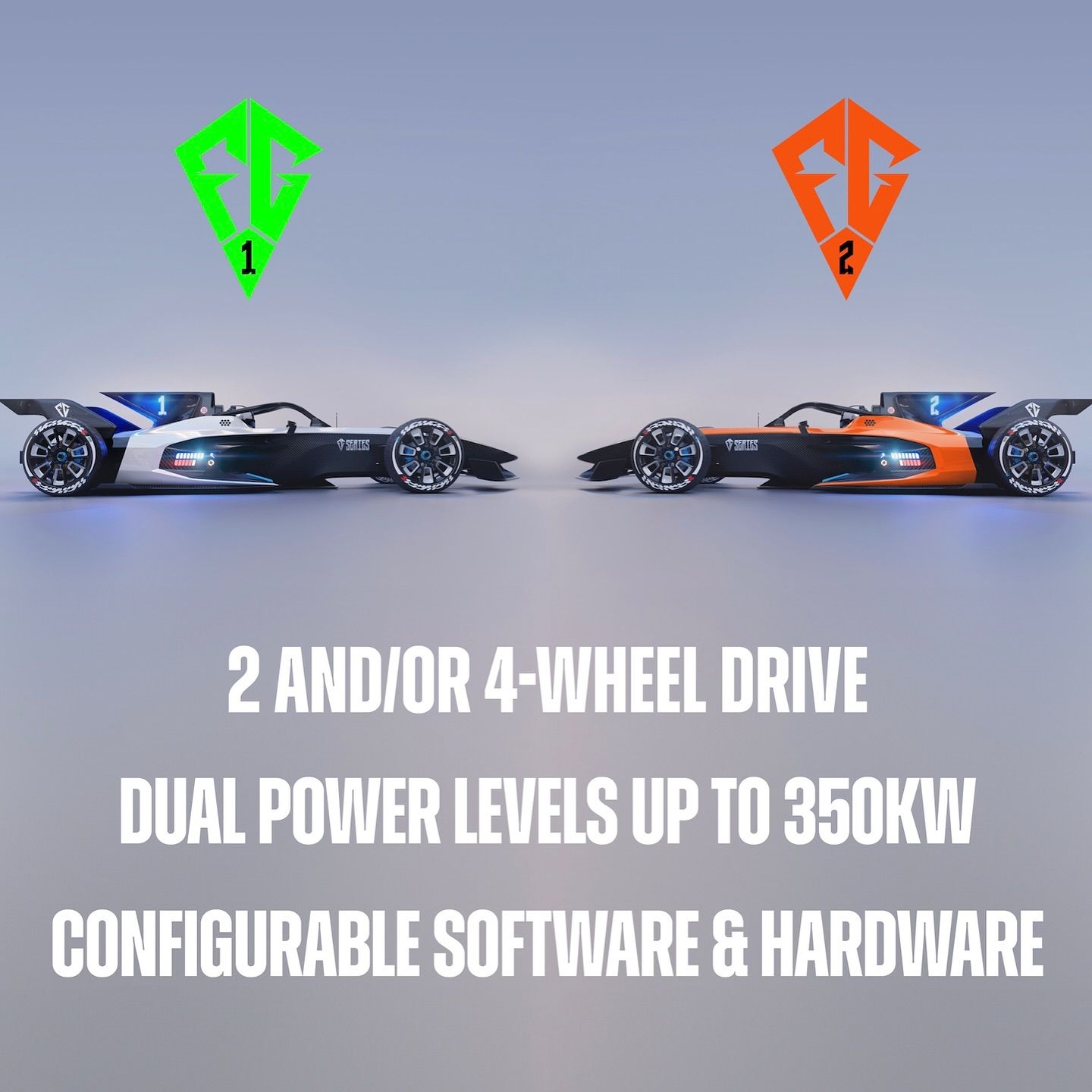 Breaking the mould of previous single-seater categories, the FG-Twin is a modular race car, offering an all-electric powertrain with both rear-wheel and four-wheel drive. The pioneering model has the ability to run the front and rear axle at 350kW of peak power and offers two different performance levels for the FG1 and FG2 championships. Alongside the different power levels, the purpose designed easy change system allows for quick adjustments to the hardware, creating a seamless transition and tailored racing experiences for drivers competing in the two FG Series Championship levels.