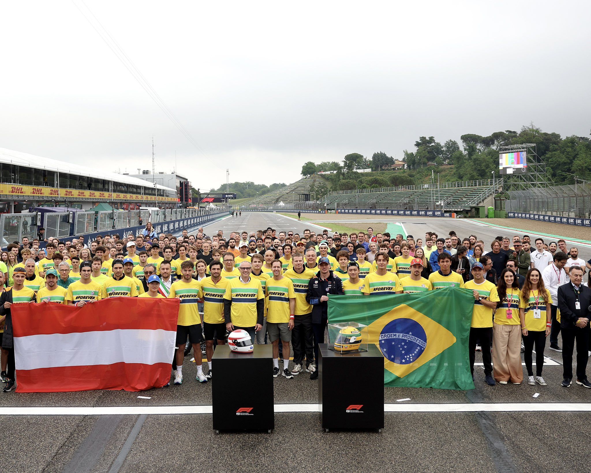 Vettel invited the whole paddock with the track filled with F1 drivers along with team bosses, F2 and F3 racers, FIA/FOM officials plus even members of Senna family. They also paid a visit to Senna’s statute in the heart of the Imola circuit as a mark of respect.