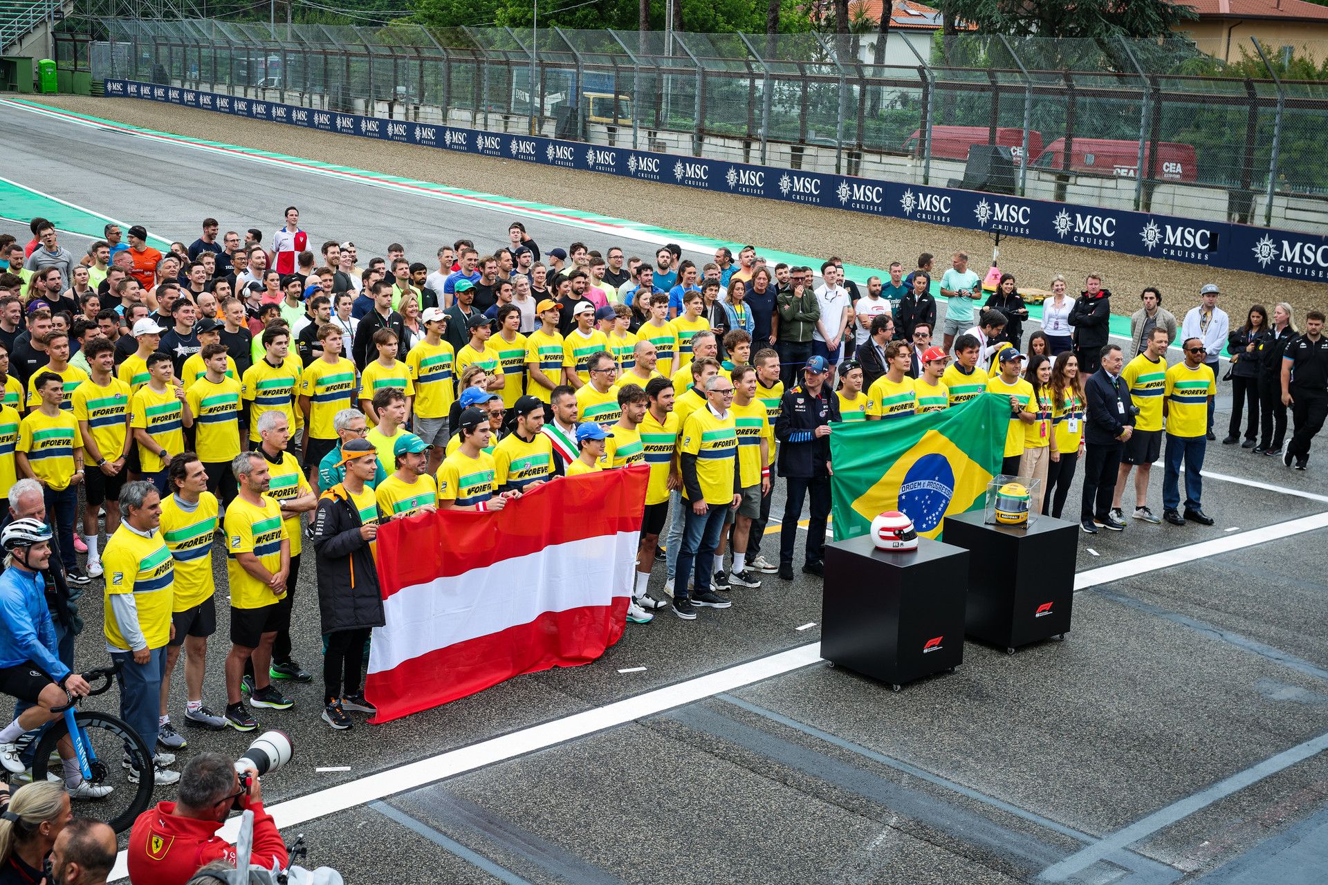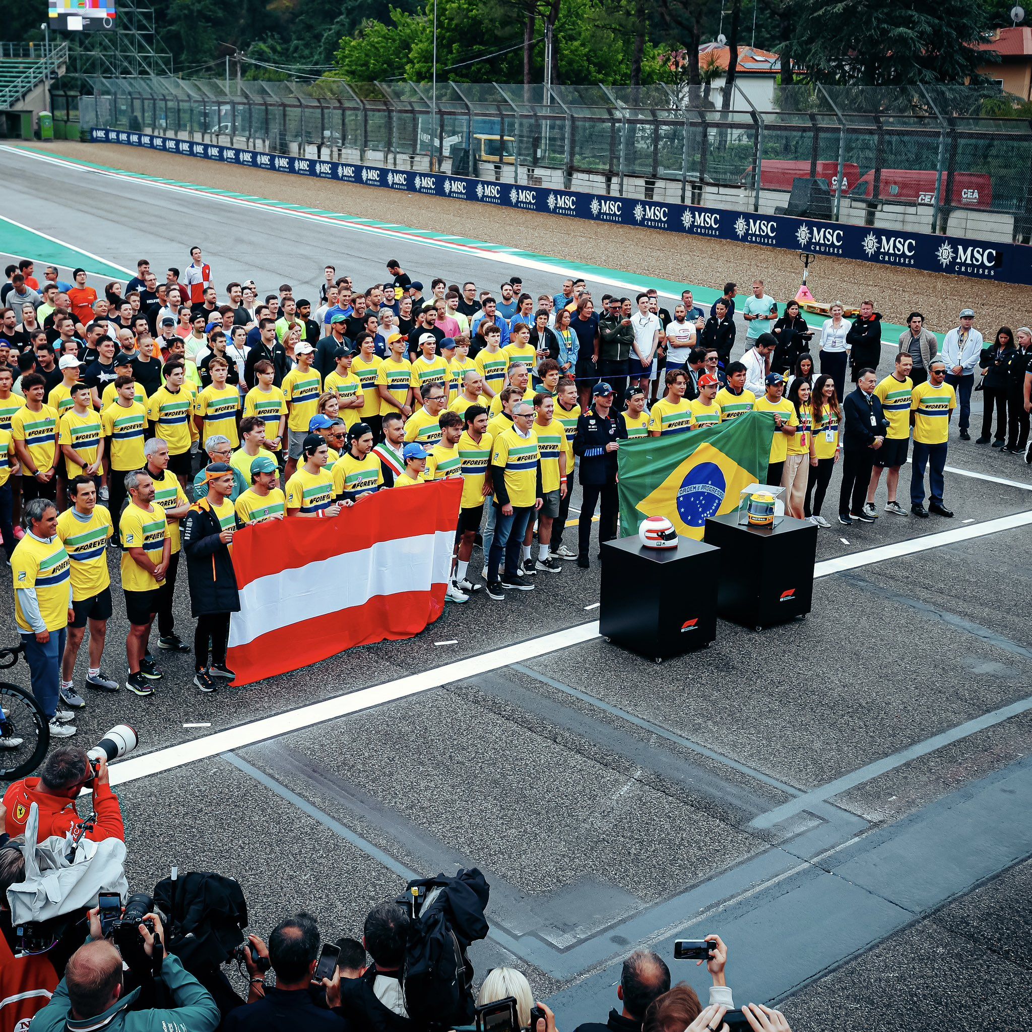 Vettel invited the whole paddock with the track filled with F1 drivers along with team bosses, F2 and F3 racers, FIA/FOM officials plus even members of Senna family. They also paid a visit to Senna’s statute in the heart of the Imola circuit as a mark of respect.