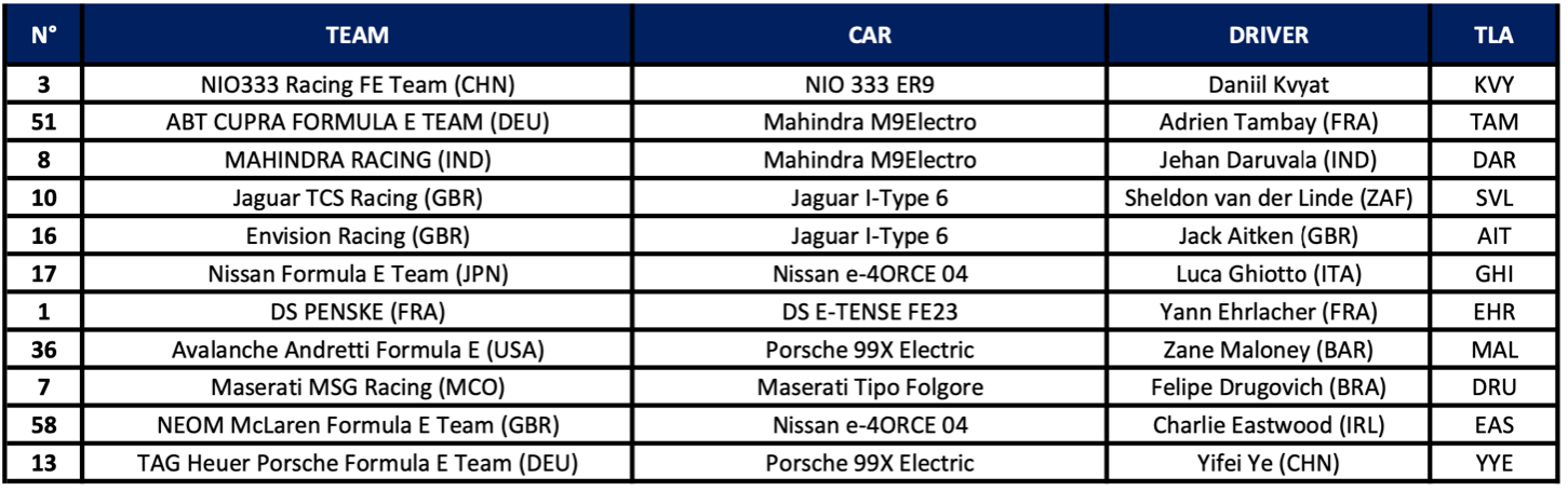 The practice session will see the return of several drivers from the rookie test session held after the 2023 Berlin E-Prix whilst Yann Ehrlacher (DS PENSKE), 2020 and 2021 World Touring Car Cup winner, will make his Formula E debut in the GEN3.