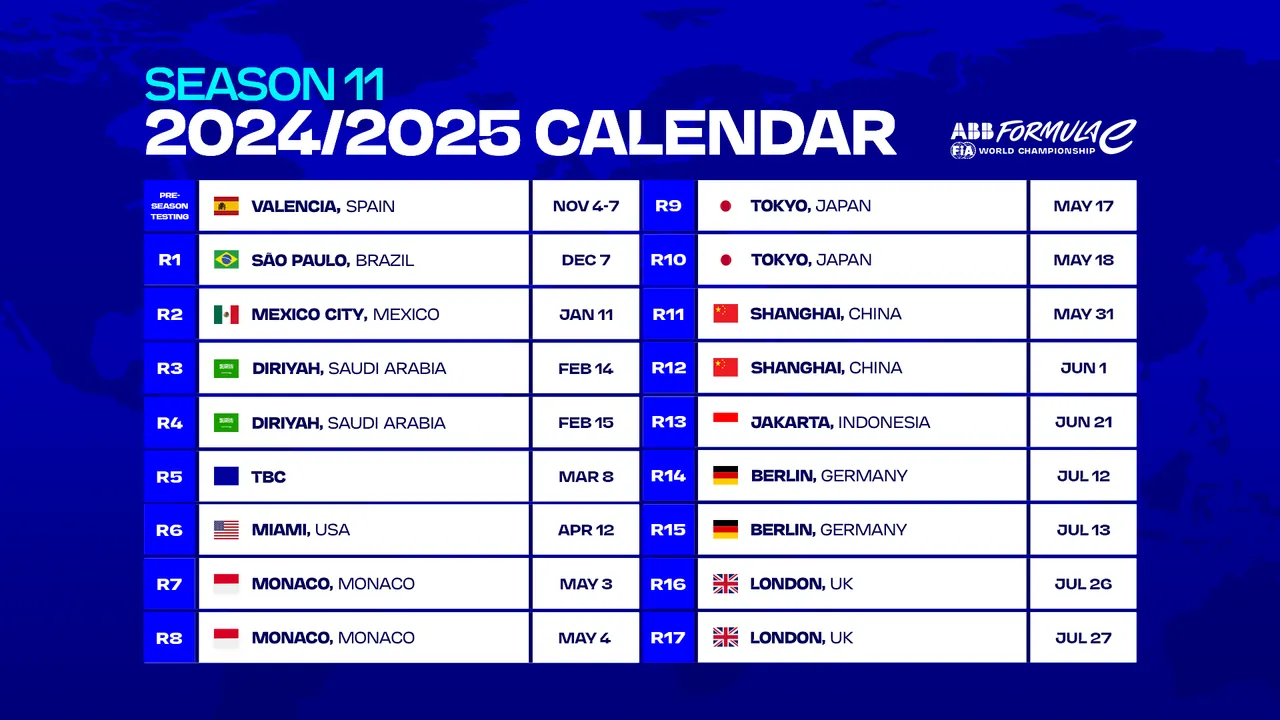 The Season 11 campaign will begin in São Paulo on the 7 December 2024 following pre-season testing on 4-7 November 2024 in Valencia. It will be the first time the all-new GEN3 Evo race car will be put through its paces and tested in public, capable of 0-60mph in just 1.82 seconds – 36% faster than the current GEN3.