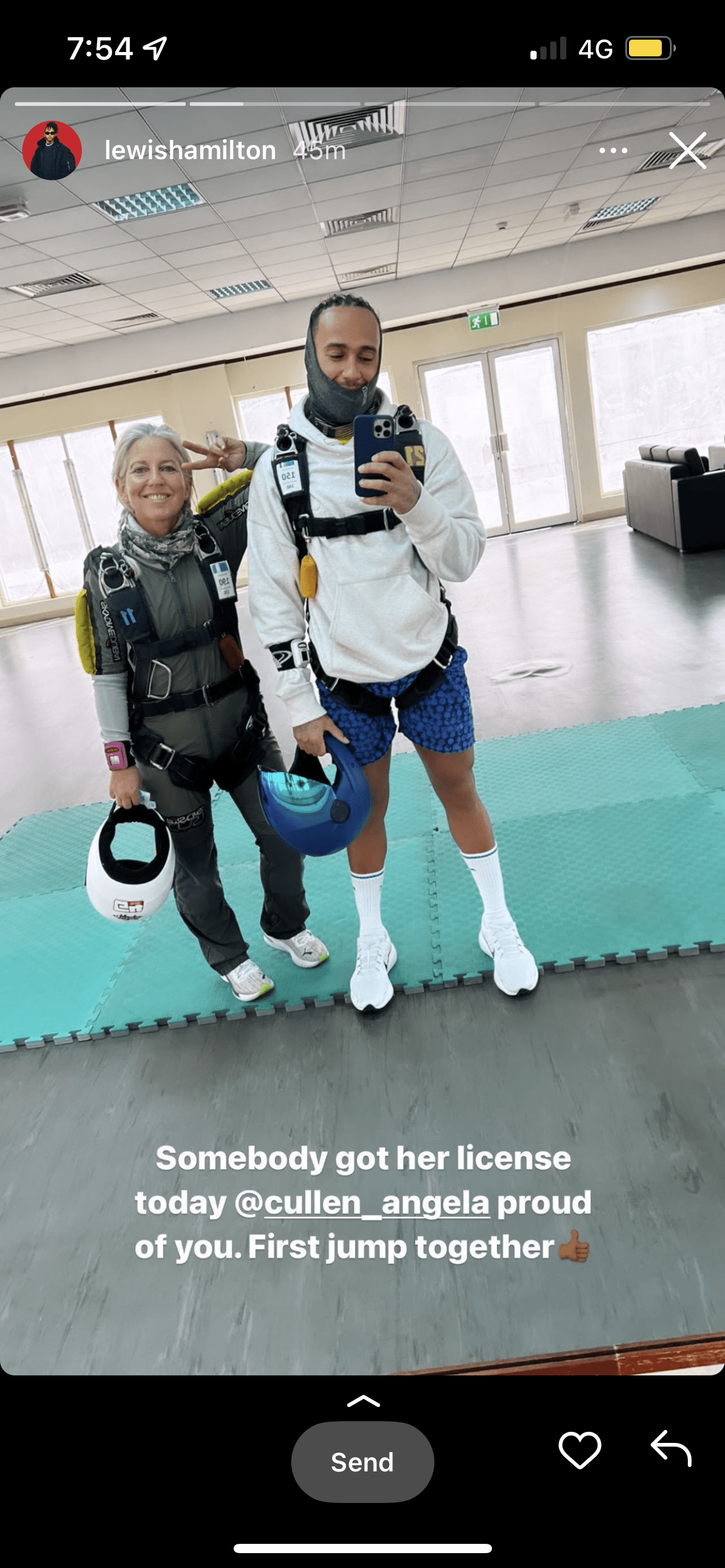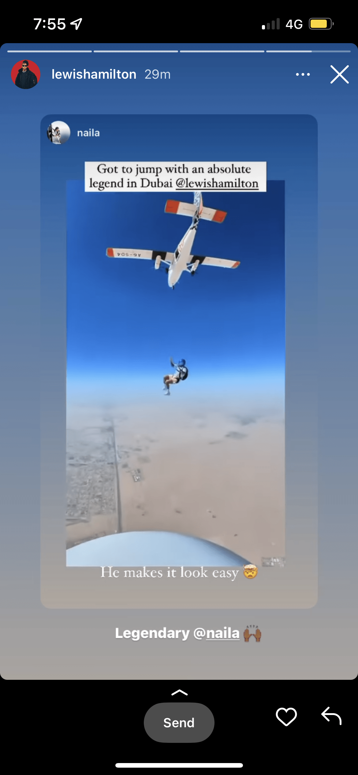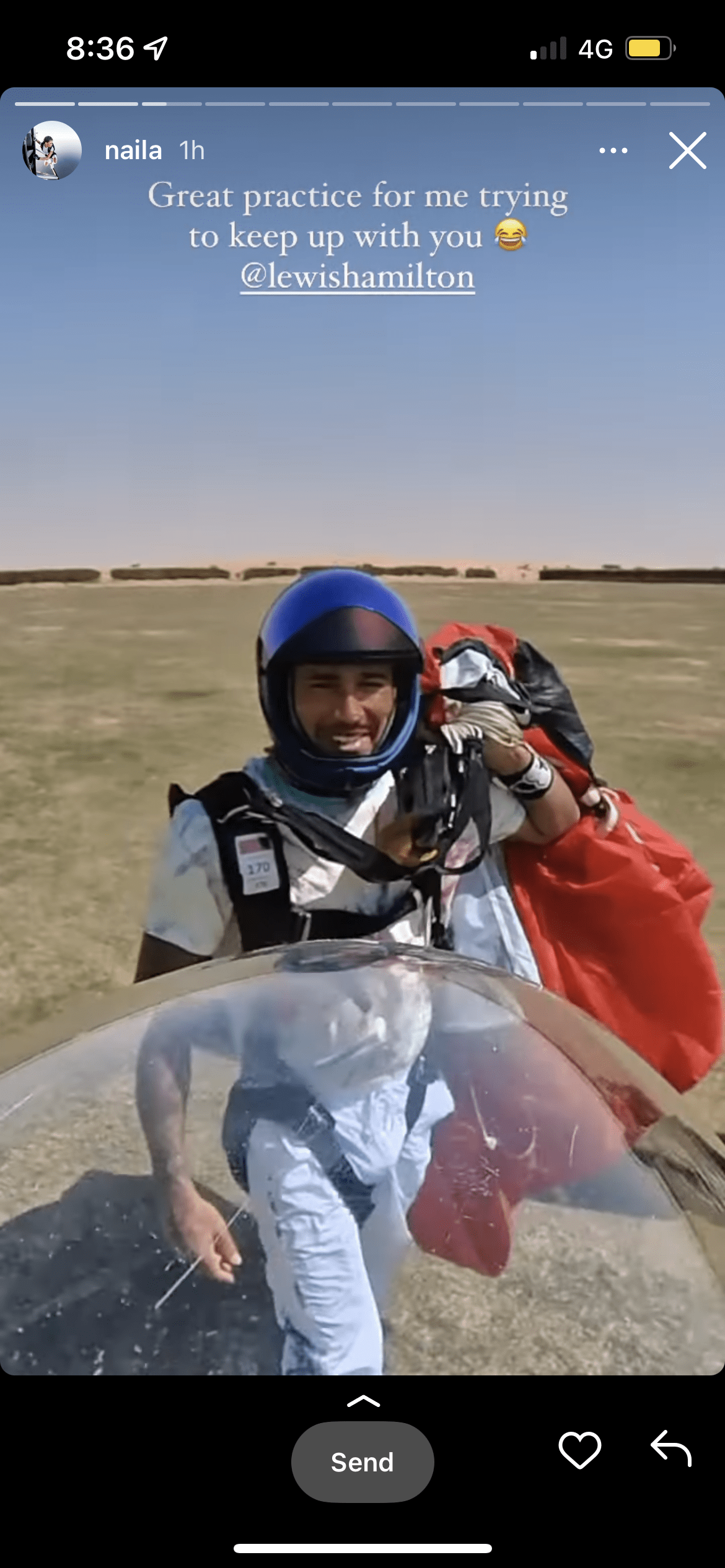 With the two races done in Bahrain and Saudi Arabia, Hamilton is relaxing in Dubai before heading out to Australia for next weekend’s grand prix. In the time off, he had another session of skydiving with Angela Cullen and Naila as shared on his Instagram.