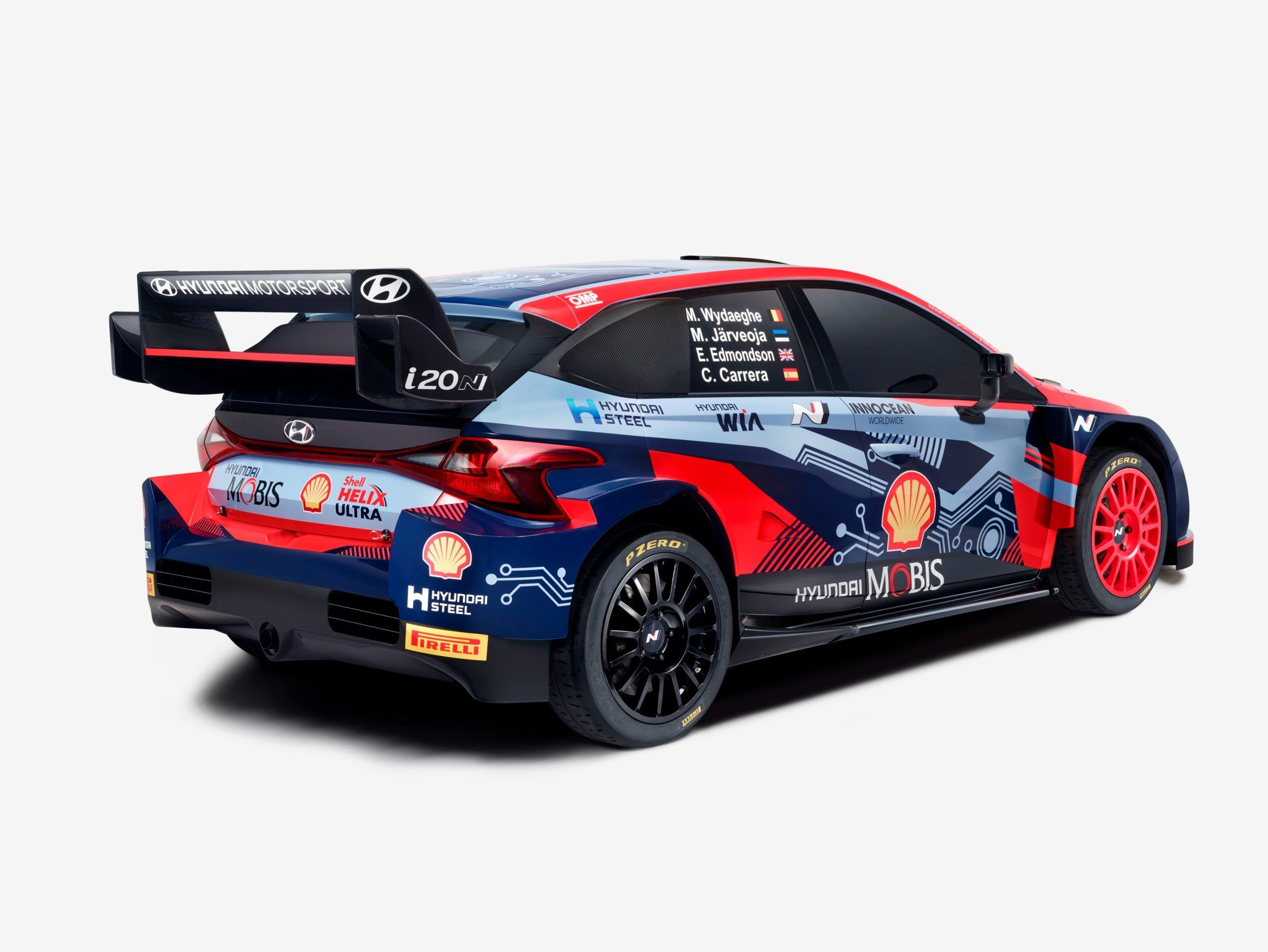 The base livery remains the same incorporating the corporate colours of Hyundai, but there are differences in the design from last year. Here’s the studio shots of the car and drivers in their overalls: