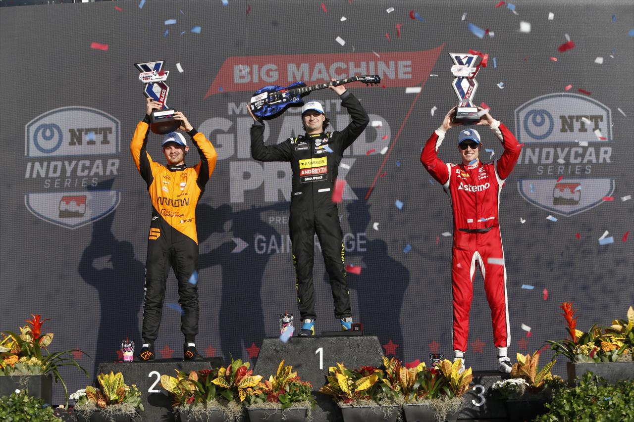 Hours after Kirkwood scored his first NTT P1 Award of the season, he pounded the Turn 4 SAFER barrier with three minutes remaining in the session. His Andretti Global team thrashed on the No. 27 AutoNation Honda well into the night, getting the car rebuilt around 1 a.m. locally. Kirkwood started Sunday’s race from the top spot and finished fourth after leading a race-high 67 of 206 laps.