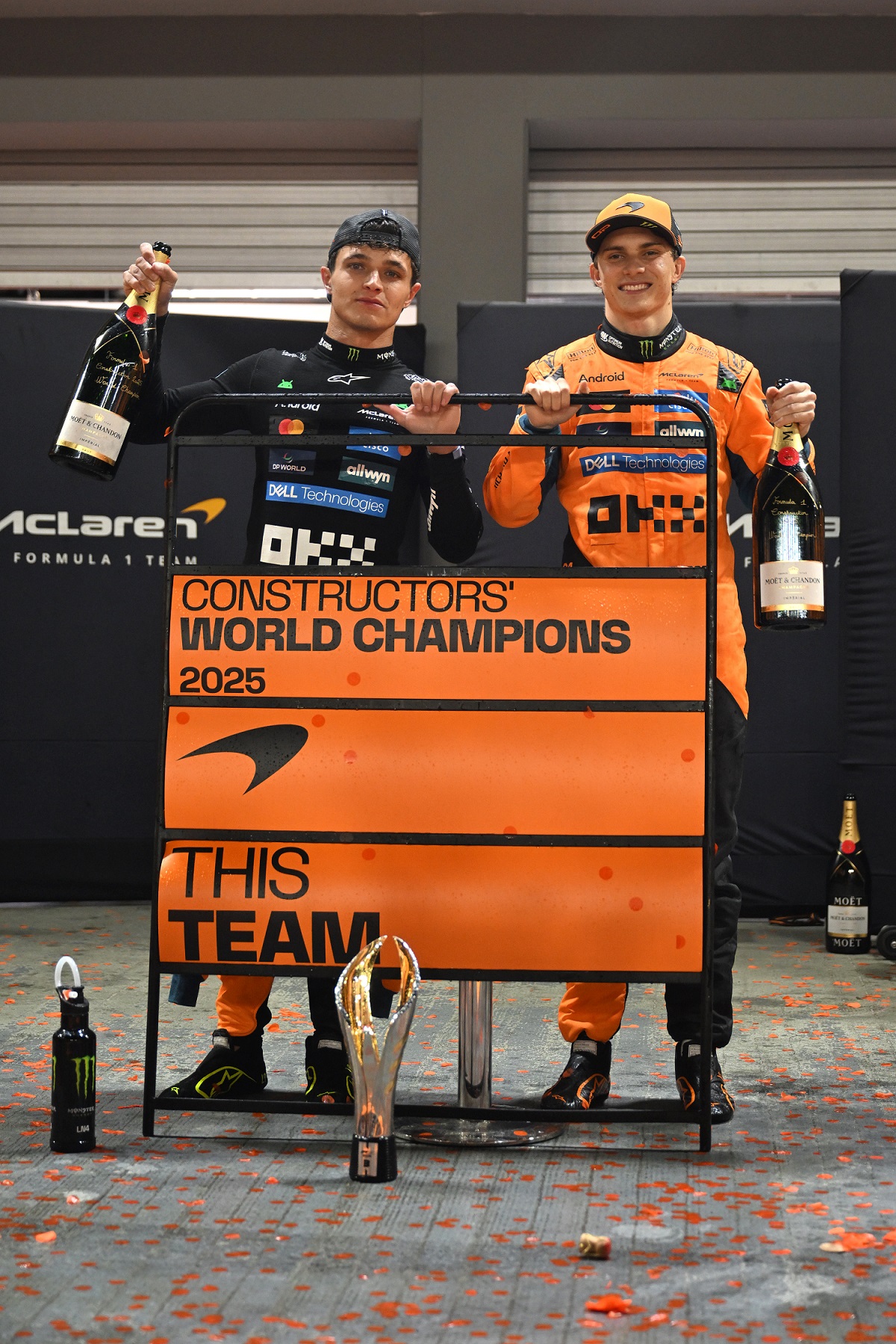 McLaren driver pair and team bosses reflect on securing the F1 2025 title to make it two constructors’ championships on the bounce.