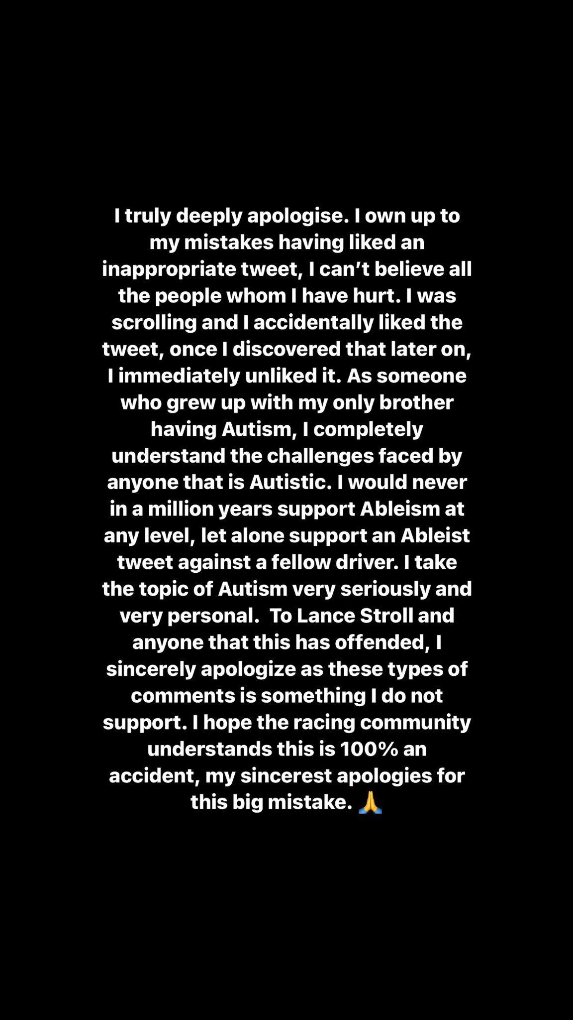 But on a larger front, Bustamante has apologised for liking a tweet which has degraded people with austism. She notes about her brother also having the same disorder and that she never meant to disrespect Stroll and anyone with the problem.