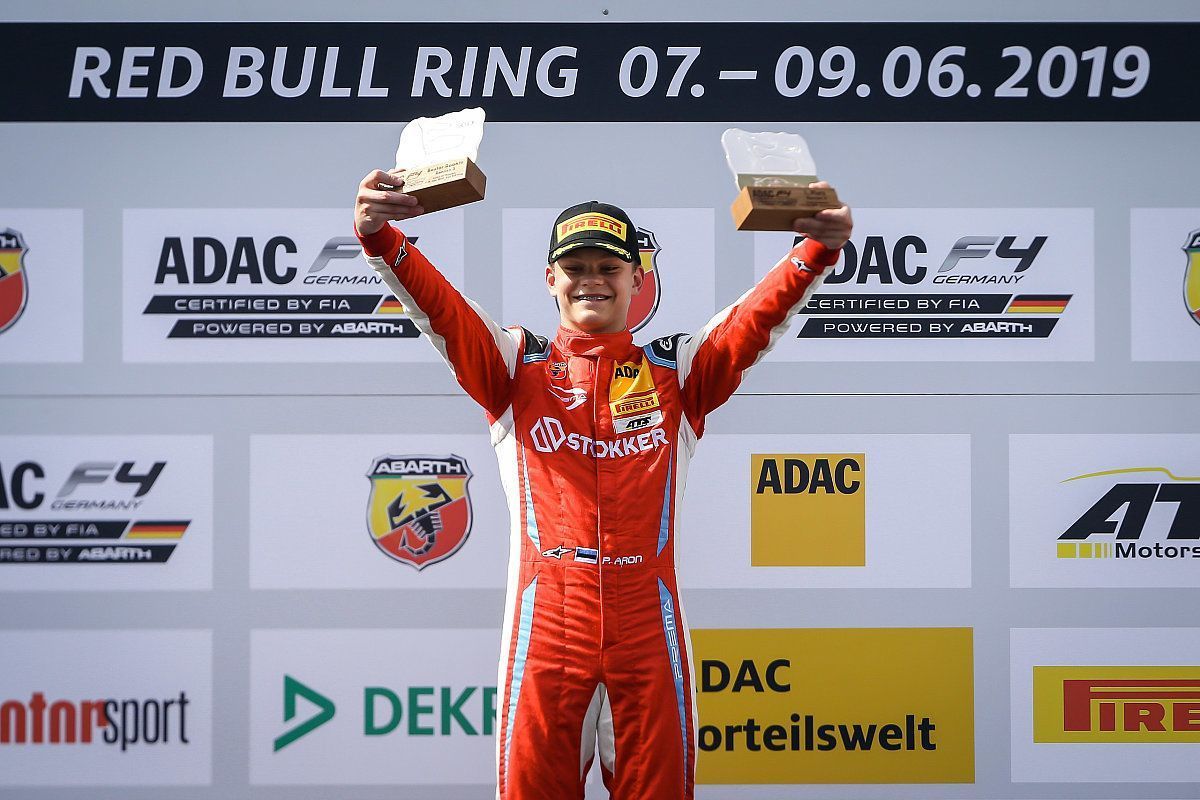 In his first year in single-seater competition as a rookie in the ADAC F4 series, Aron sits fifth in the standings after two rounds with his maiden win at Red Bull Ring. He is second in the rookie standings with 93 points to the leader’s 103 so far.