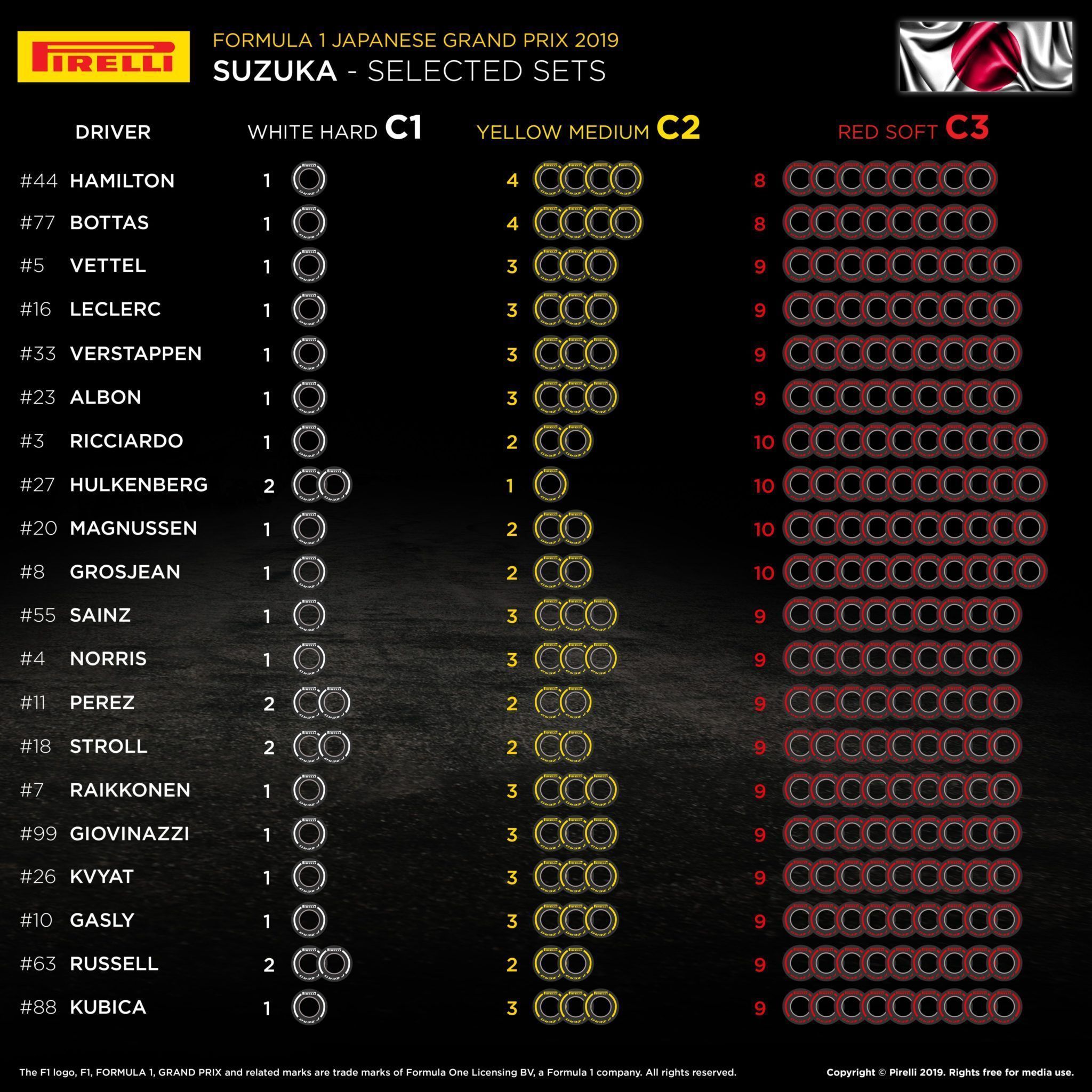 As known, Pirelli is bringing C1 (hard), C2 (medium) and C3 (soft) for the F1 Japanese GP at Suzuka, with Mercedes once again opting to go different to other teams in their tyre choice with least number of the soft compound.