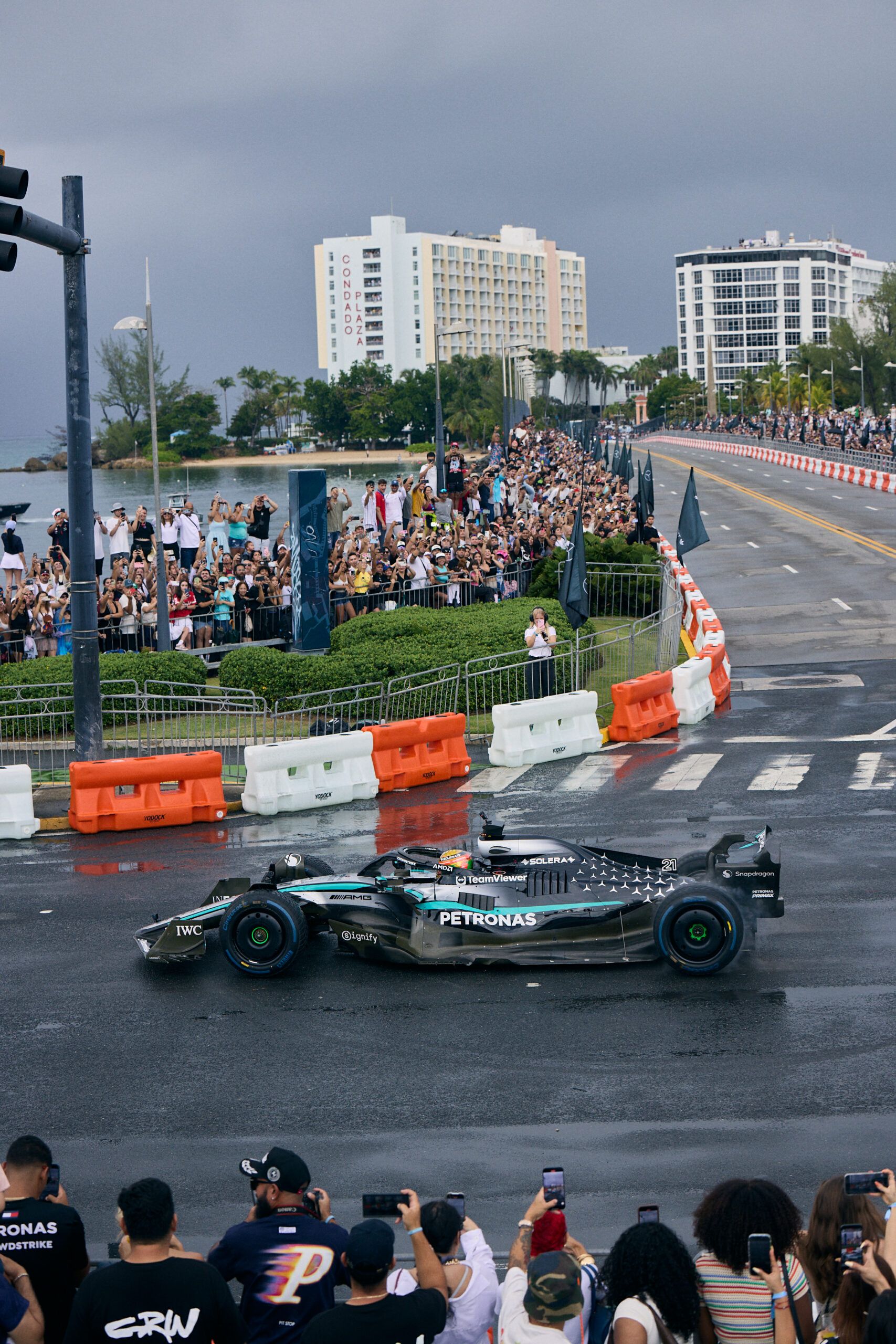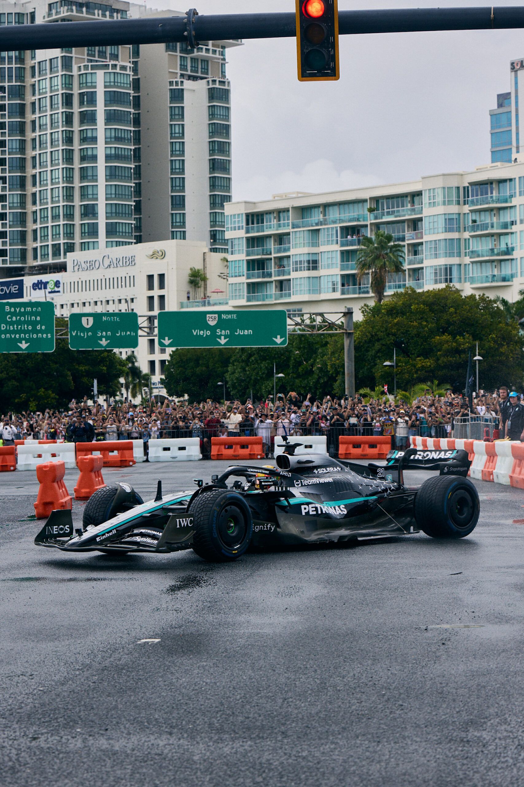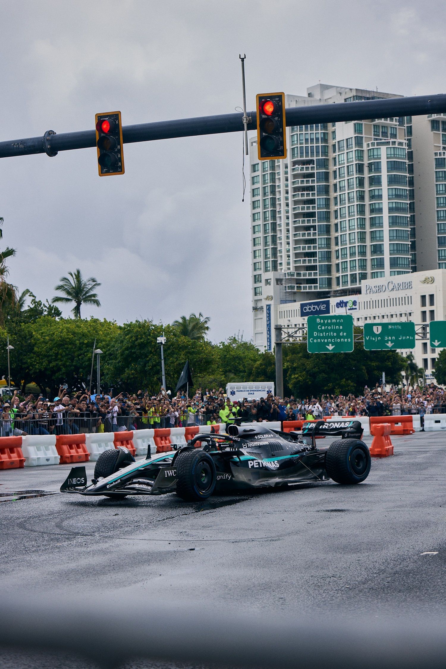 Fans began gathering overnight in anticipation, staking out the best views along the iconic bridge that connects Condado to Old San Juan. Led by Mercedes-AMG PETRONAS F1 driver Esteban Gutierrez, the run kicked off just after 9:00AM and delivered a sequence of high-octane moments that included live burnouts, donuts, and laps that left fans in excitement.