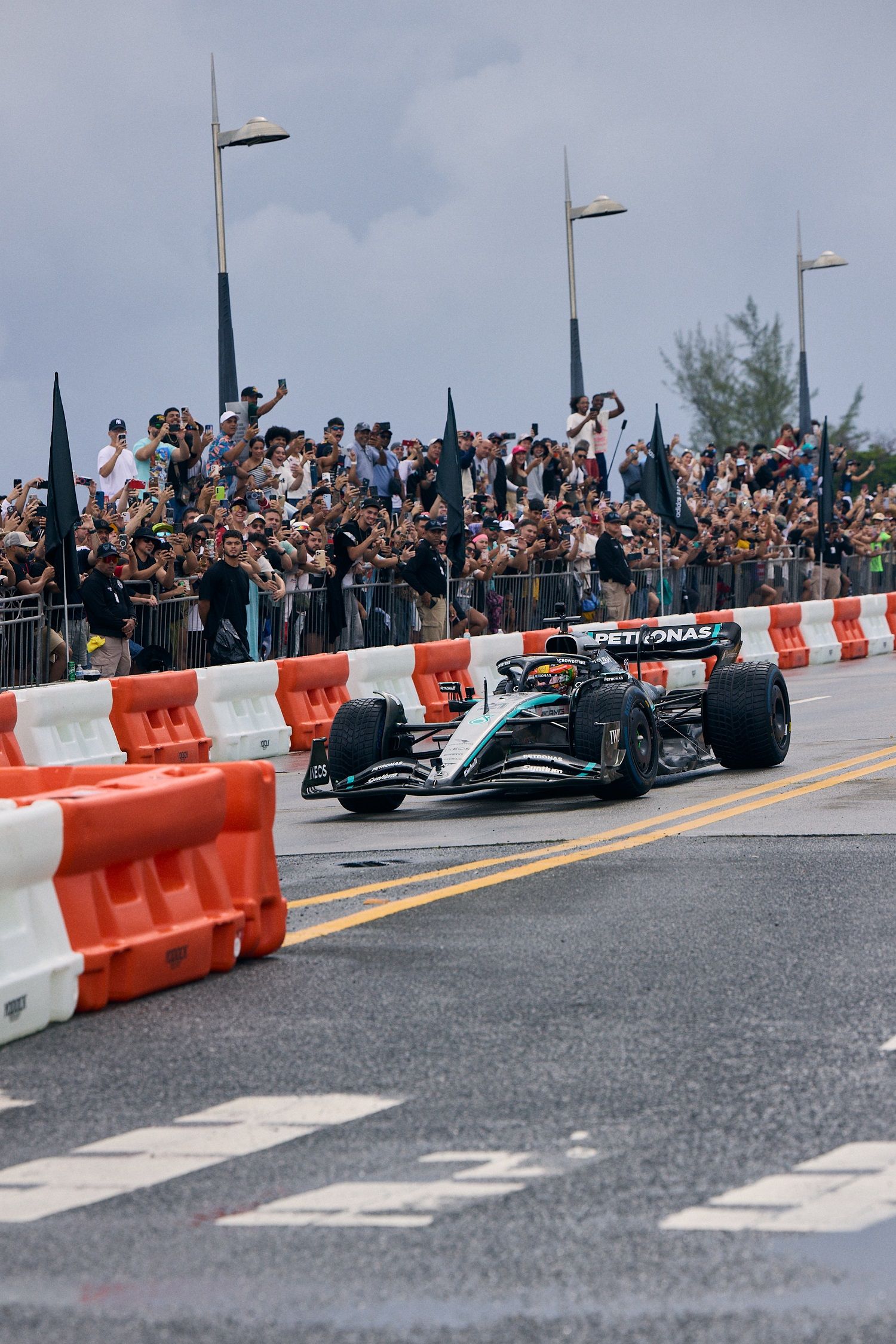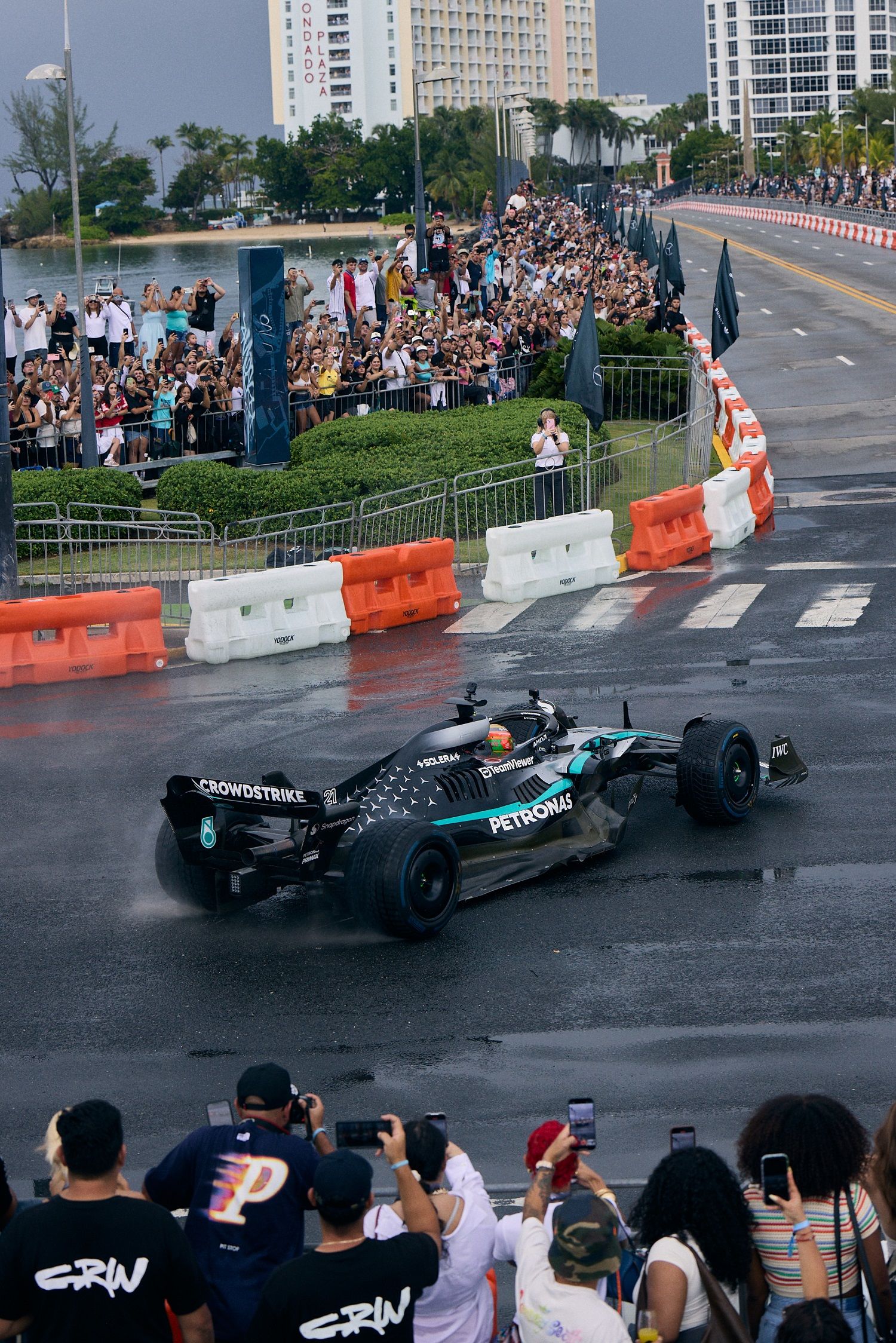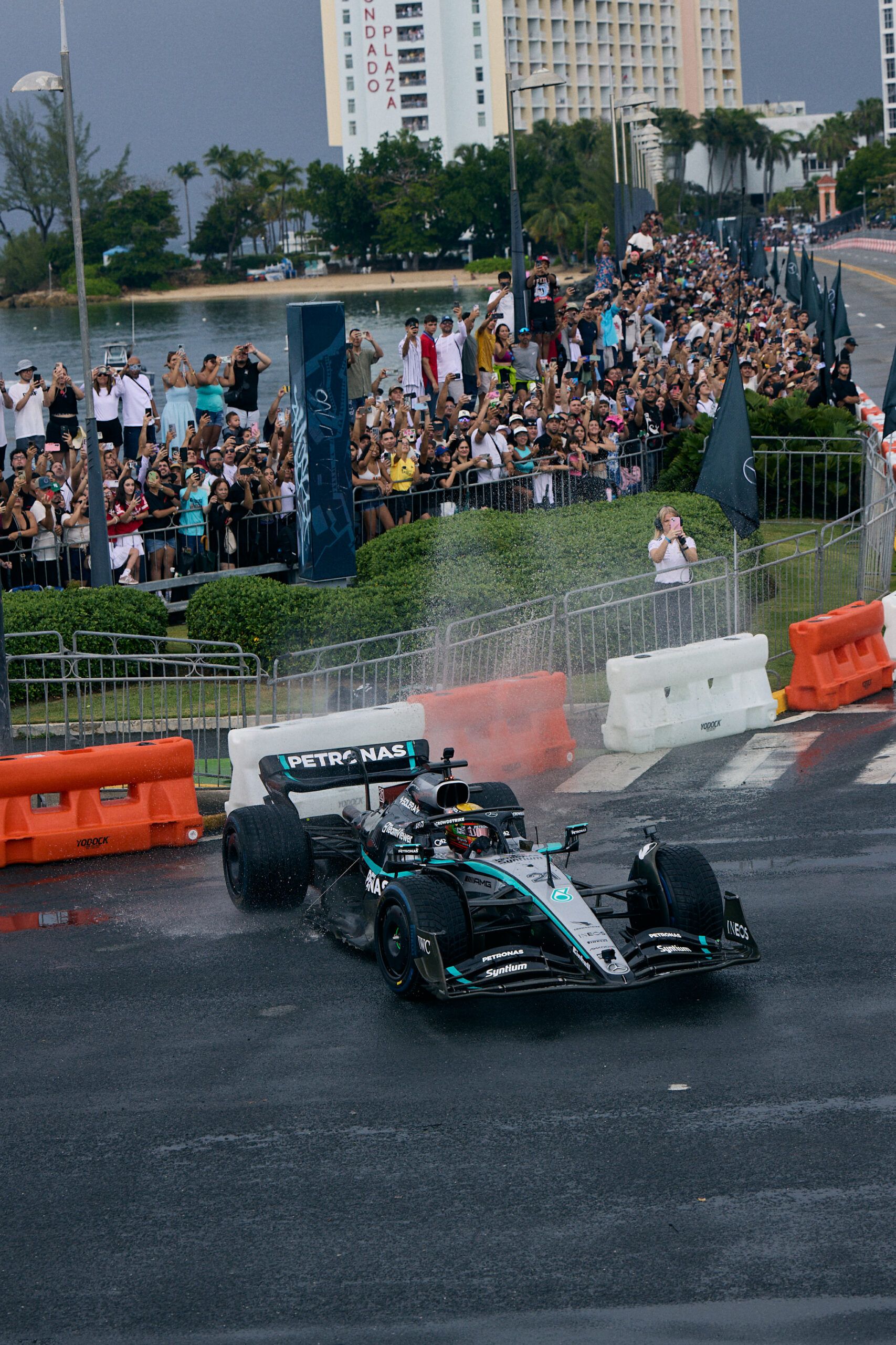Fans began gathering overnight in anticipation, staking out the best views along the iconic bridge that connects Condado to Old San Juan. Led by Mercedes-AMG PETRONAS F1 driver Esteban Gutierrez, the run kicked off just after 9:00AM and delivered a sequence of high-octane moments that included live burnouts, donuts, and laps that left fans in excitement.