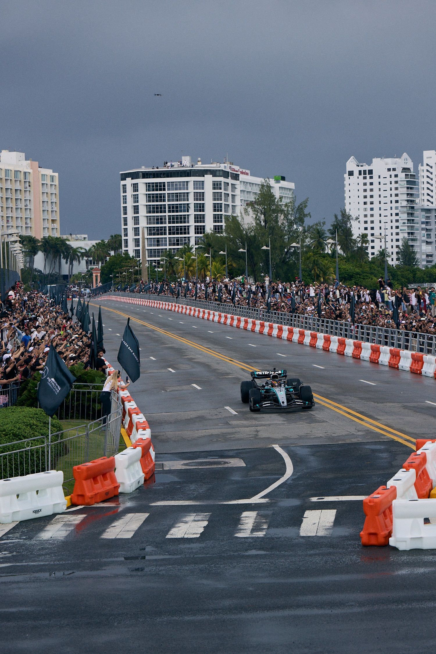 Puerto Rico made history today as over 9,000 people from across the island proudly gathered along San Juan’s iconic Puente Dos Hermanos to witness a landmark Formula 1 demo run hosted by adidas Originals, global superstar Bad Bunny, and the Mercedes-AMG PETRONAS F1 Team. The moment marked the first time a Formula 1 car has ever raced on Puerto Rican soil.
