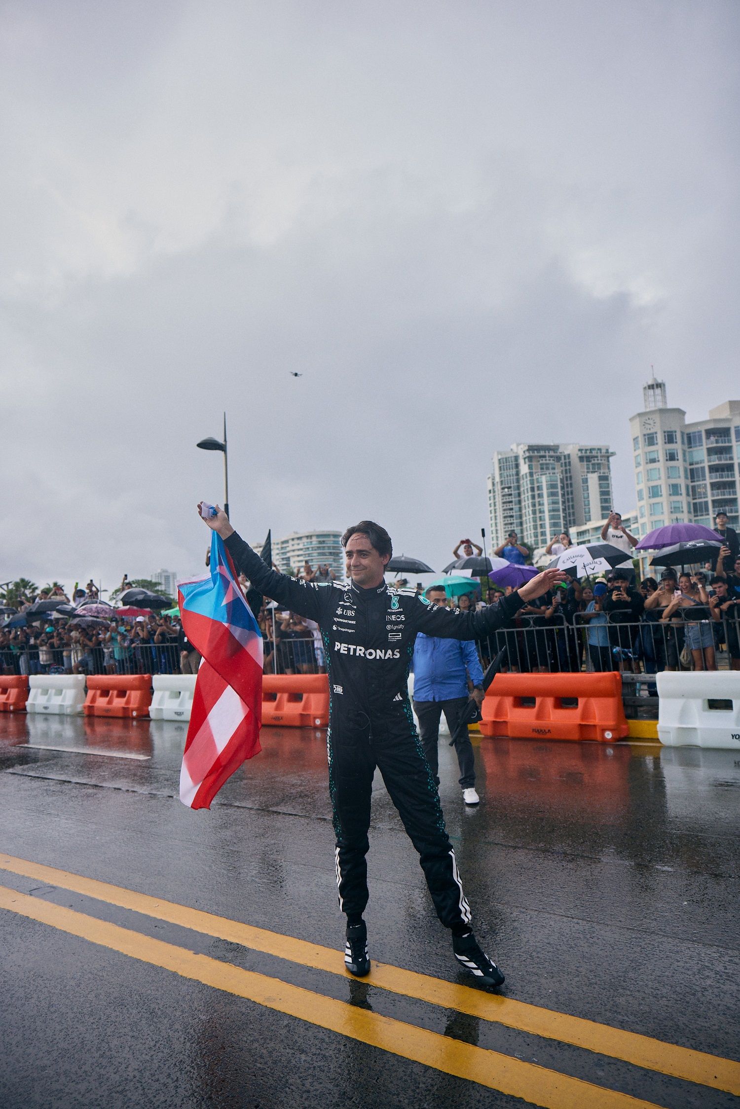 Following the demo, fans were invited to explore a curated exhibit of racing suits, gloves, and legacy gear from the Mercedes-AMG PETRONAS archives, offering an intimate look at motorsport’s past while celebrating its future on the island. In a time when Puerto Rico is reclaiming its place on the global stage, today’s demo served as a powerful declaration of the island’s cultural reach and global presence.