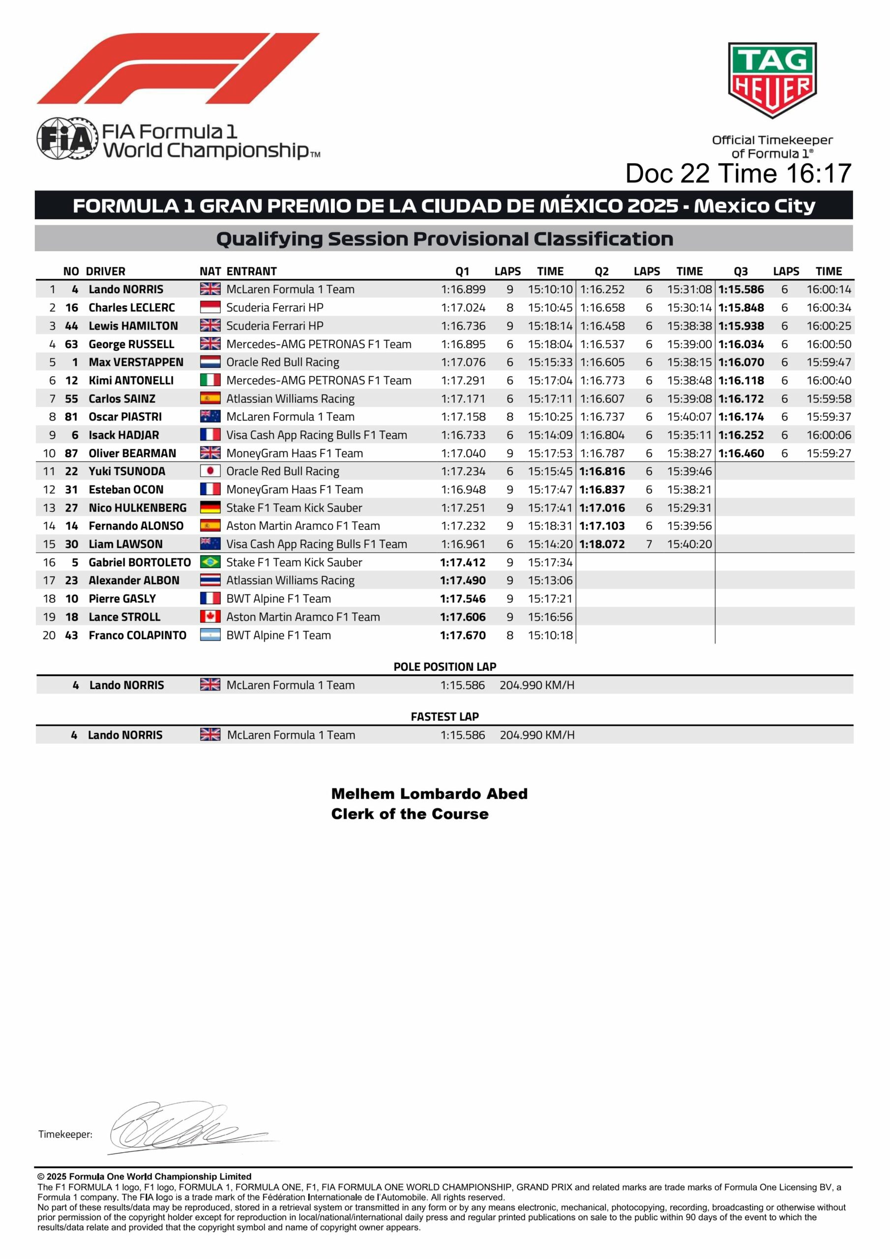 Here’s Lando Norris topping FP3: https://www.formula1.com/en/latest/article/fp3-norris-leads-hamilton-and-russell-in-final-practice-ahead-of-mexico-city.zQqKaWJQ8Z5aShSaz5Stl