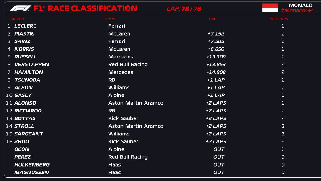 It was controlled pace but Leclerc finally broke the jinx of his home event to win the F1 Monaco GP and took his first victory since 2022 Australian GP, as Piastri managed to hold off Sainz for second with Norris rounding out a close 2-3-4.