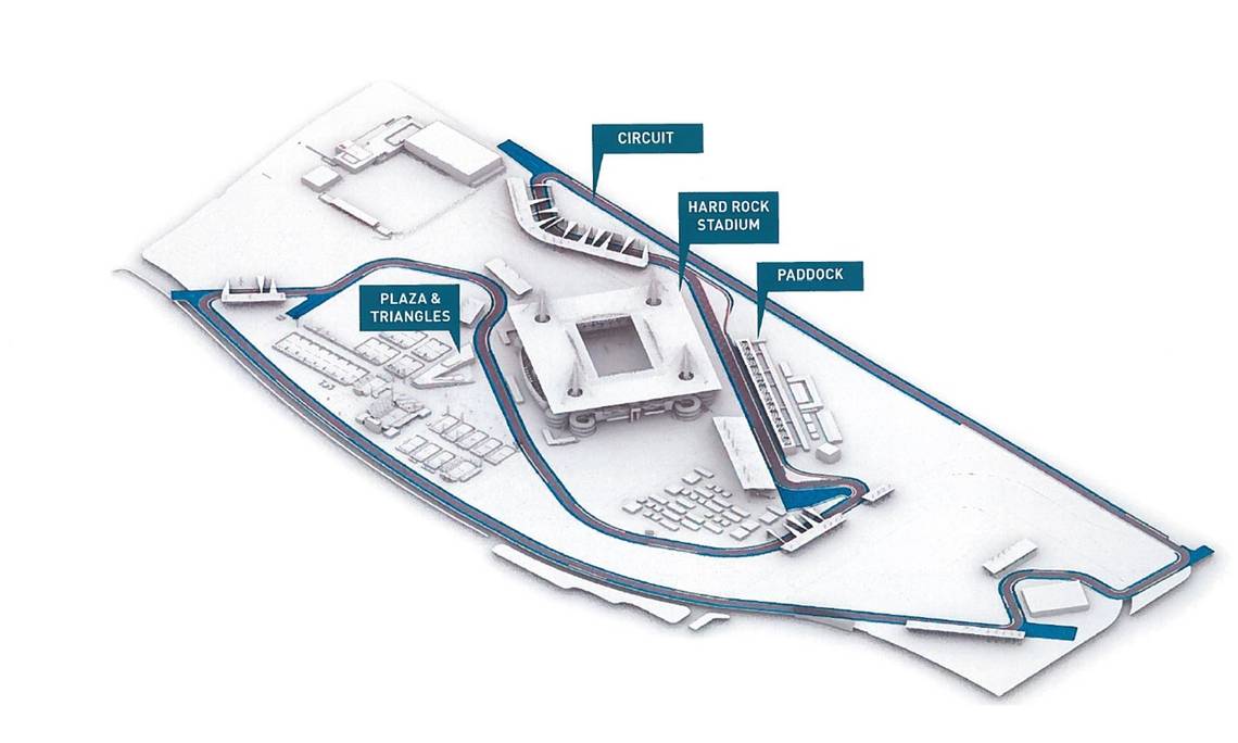 It shows the circuit going around the stadium, with the use of the parking lots. The 18-turn configuration is to be an anti-clockwise circuit, with the paddock situated opposite of one side of the stadium wall. The new venue for Miami GP, as well, is facing troubles too.