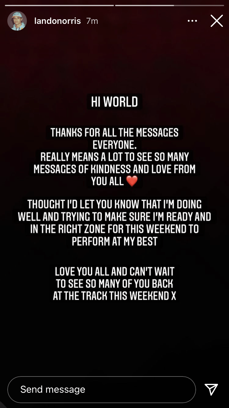 UPDATE: Following the statement from McLaren, Norris took to social media to thank for the messages and note about being ready for this weekend’s F1 British GP.