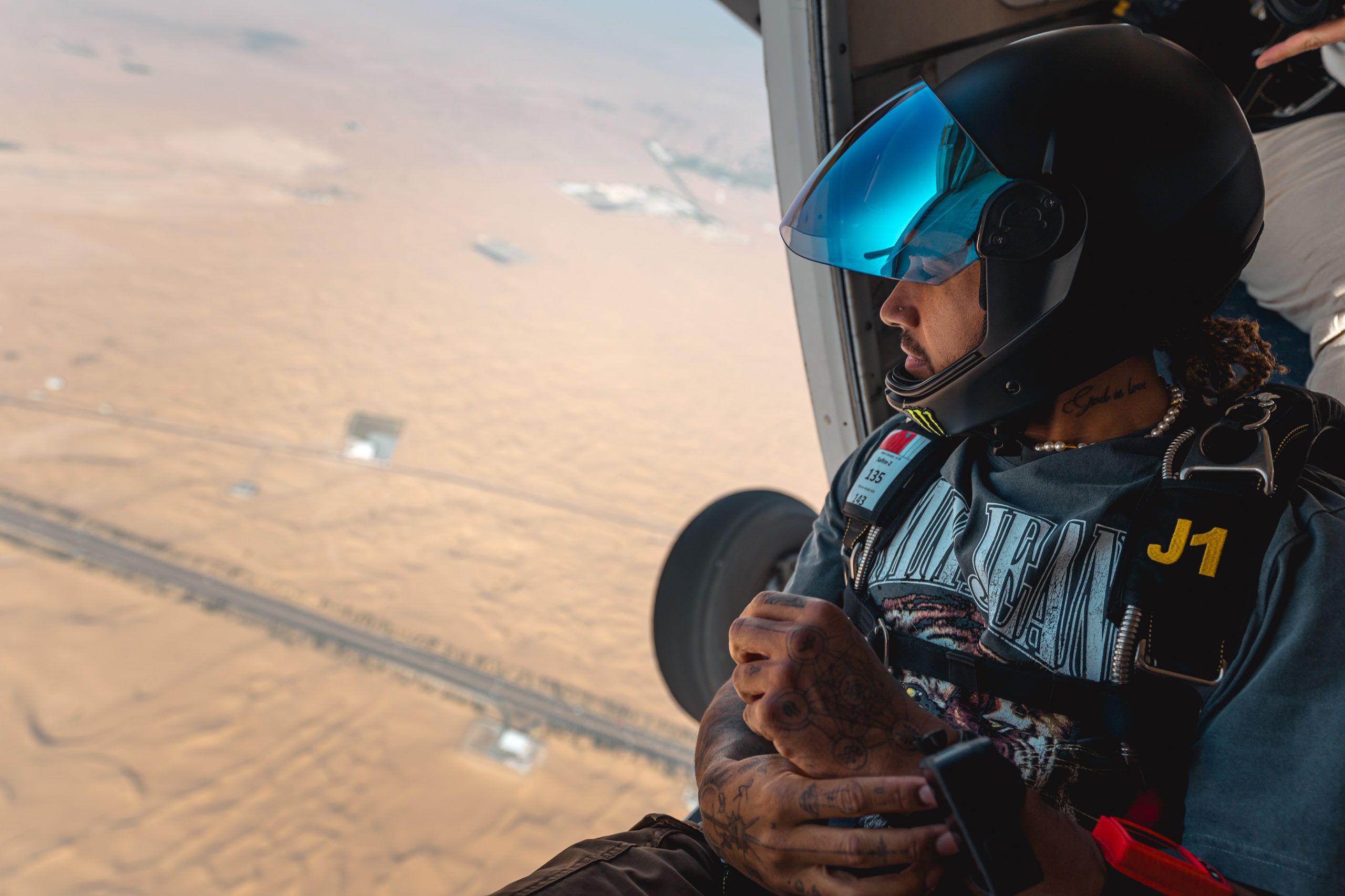 Lewis Hamilton had his annual skydiving programme to mark the end the 2023 F1 season and also the year with Monster Energy.