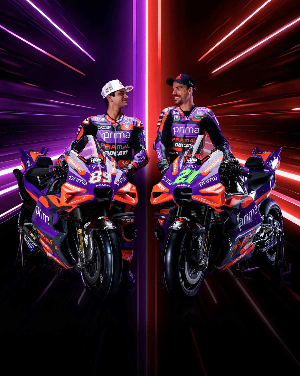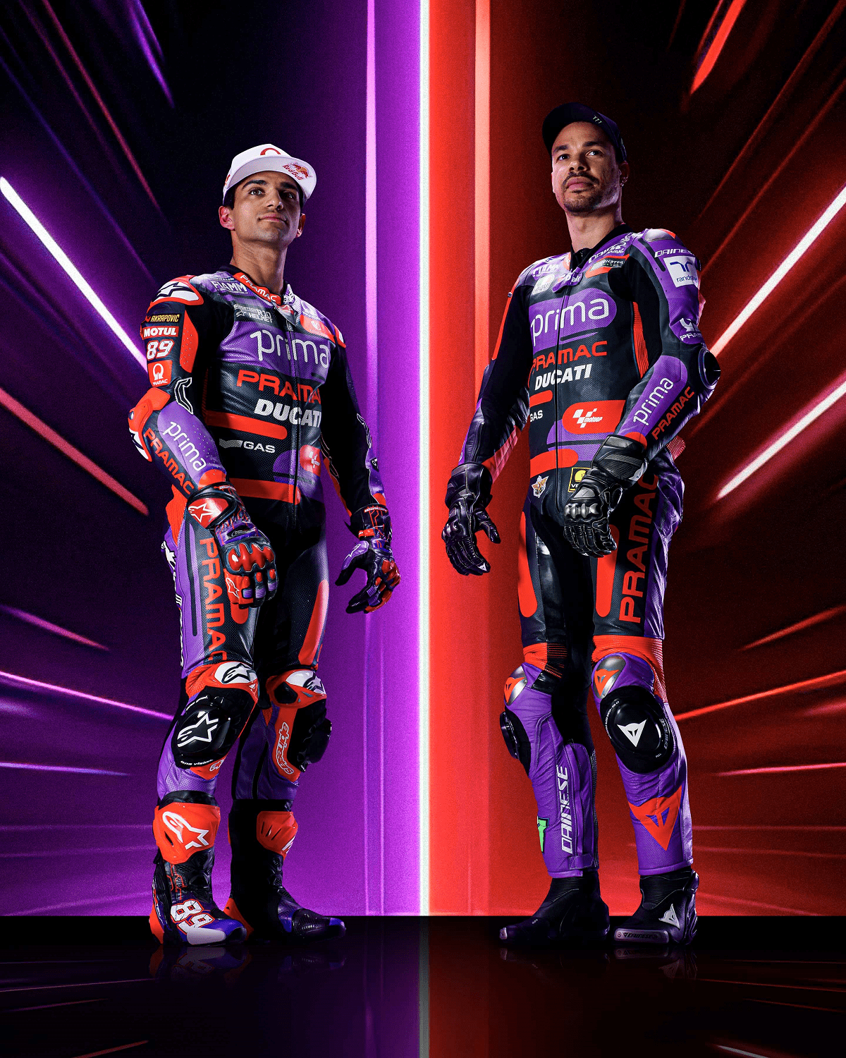 The Team in the red and purple livery will be present on the starting blocks with fresh ambitions, following its Team World Champion title in 2023 – a historic first for an independent team – and the excellent season of Jorge Martin, who was in the running for the title of Riders’ Champion right up until the last race, and took home the title of Best Independent Rider. The Spaniard, about to ride his Ducati Prima Pramac for the fourth consecutive year, ended the last season with four GP and nine sprint race victories, totalling 22 spots on the podium (including sprint races).