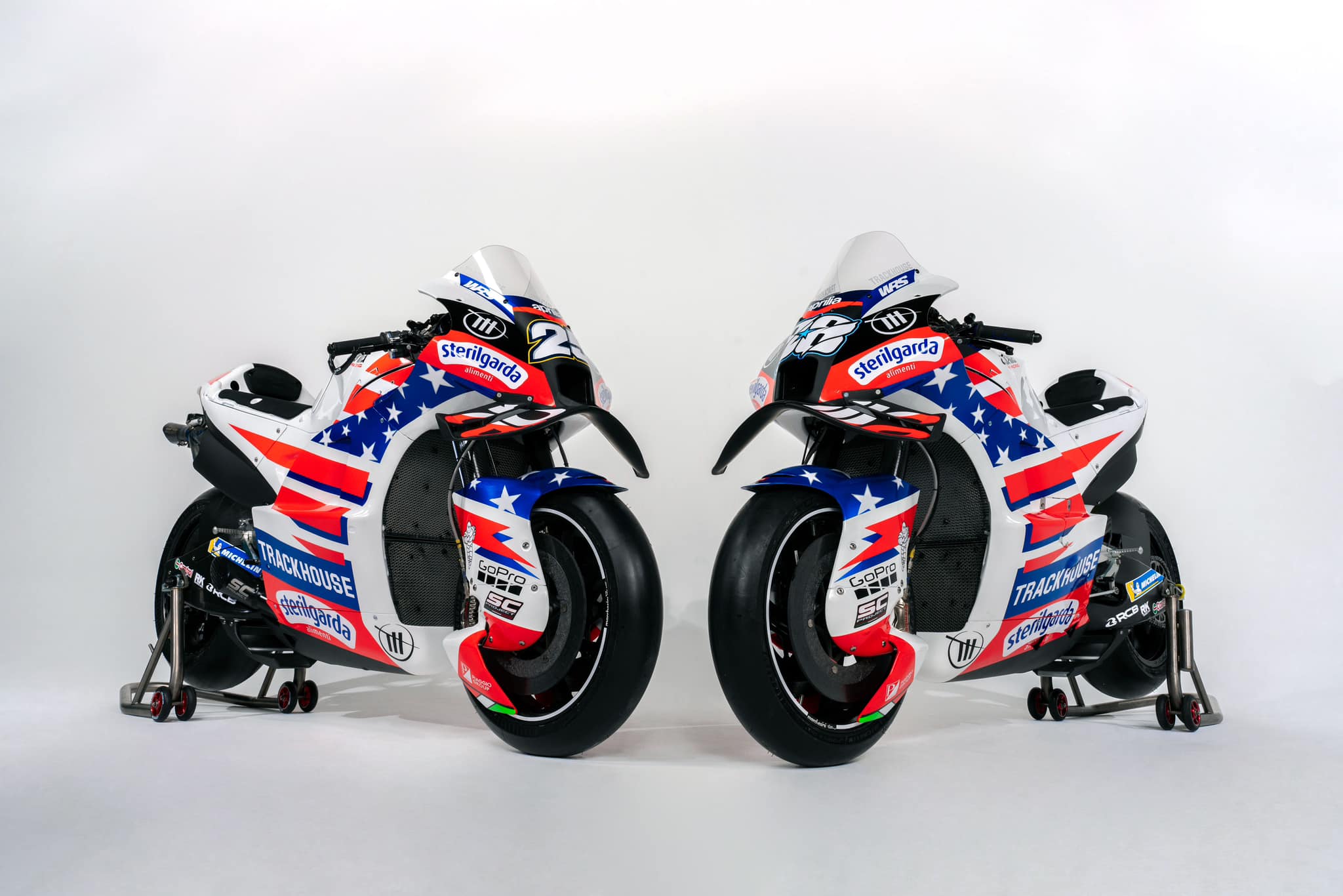 Trackhouse Racing Aprilia has unveiled its American-flag inspired livery for their debut MotoGP championship running in 2024.