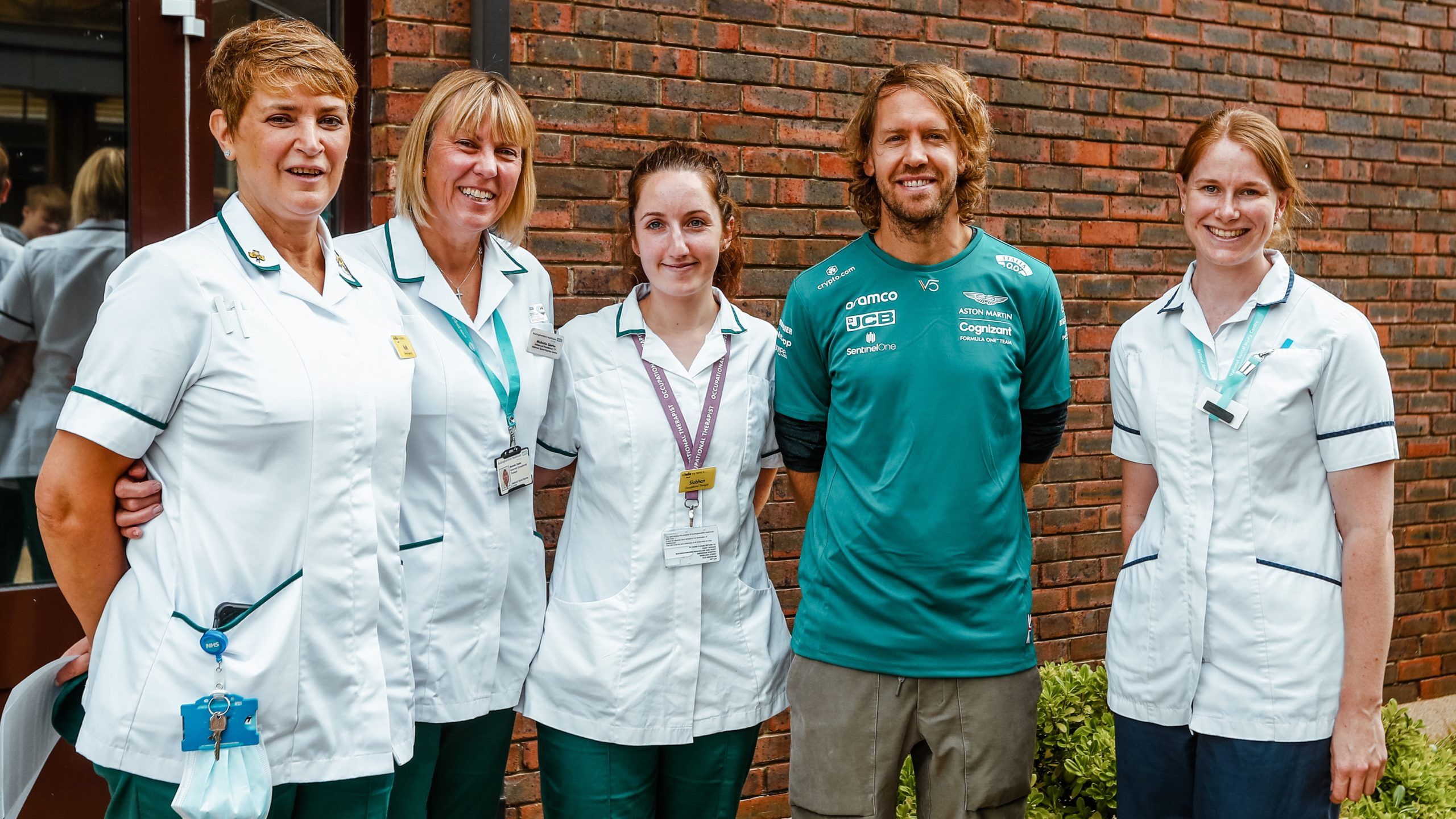 “This morning, we took some time out with Sebastian to visit Stoke Mandeville Hospital, meeting NHS staff and patients at the National Spinal Injuries Centre to learn more about their ground-breaking work,” read a statement from Aston Martin.