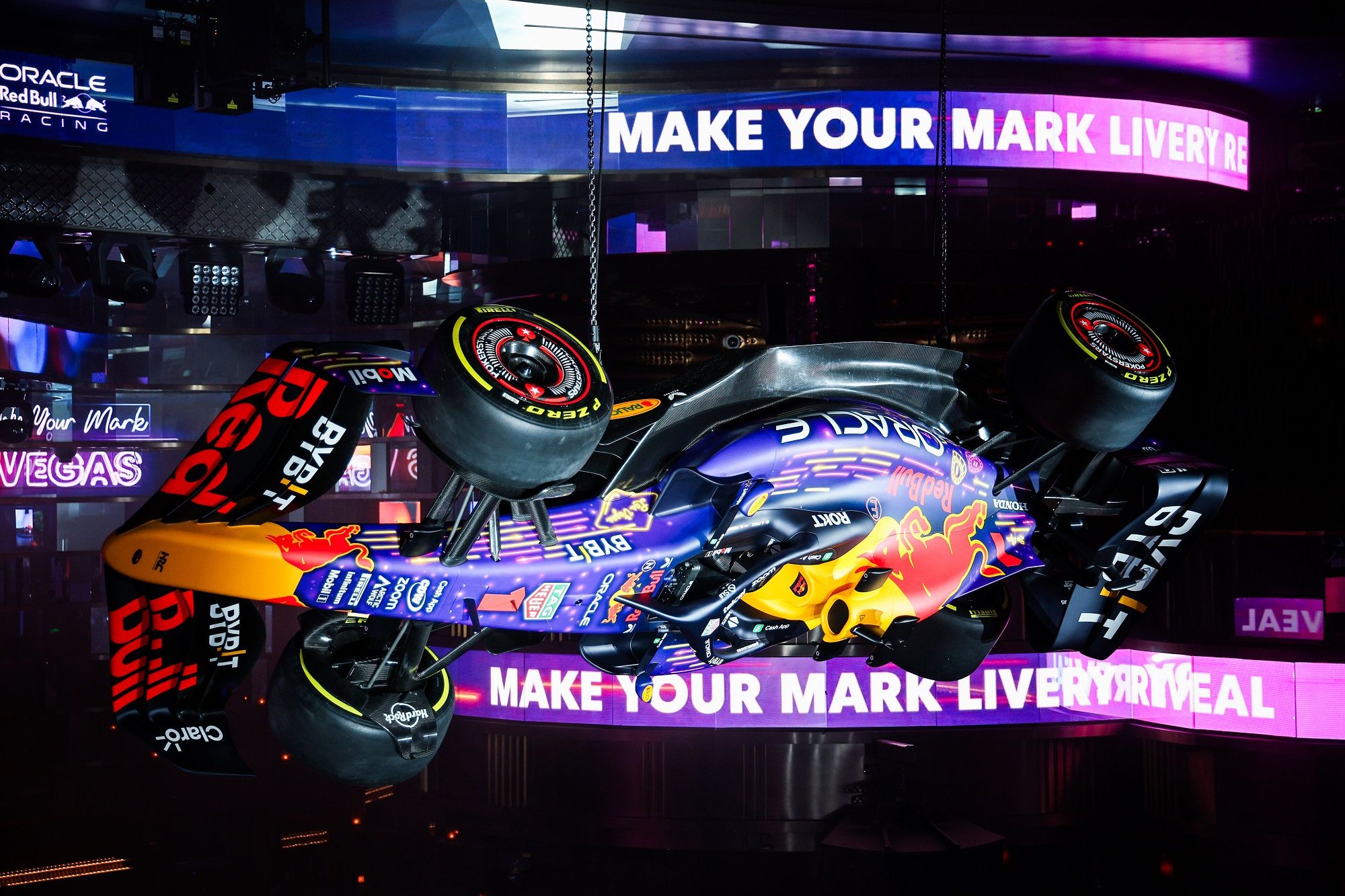 LAS VEGAS, NEVADA – NOVEMBER 14: The Oracle Red Bull Racing RB19 is seen at the Red Bull Racing Make Your Mark Las Vegas Livery Reveal during previews ahead of the F1 Grand Prix of Las Vegas at Las Vegas Strip Circuit on November 14, 2023 in Las Vegas, Nevada. (Photo by Jared C. Tilton/Getty Images) // Getty Images / Red Bull Content Pool // SI202311150760 // Usage for editorial use only //