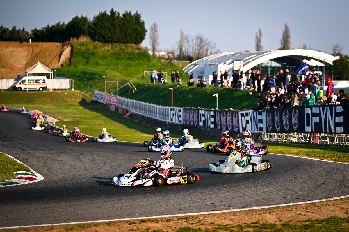 In the C-D heat, championship leader Niccolò Perico (KR Motorsport – KR/Iame) claimed the win, recovering from his qualifying position to finish ahead of fellow countryman Gioele Carrer (Emme Racing – EKS/Modena Engines) and Swiss driver Aurelio Longhitano (Spirit-Karting.CH – Tony Kart/Modena Engines).