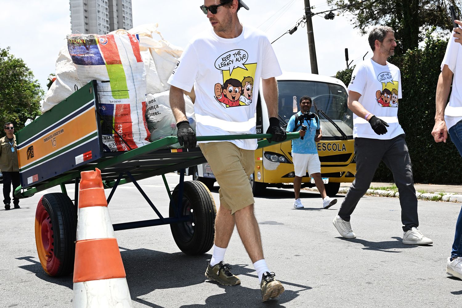 Vettel: “I think, waste is a global problem and the way we look at waste as well, it is something that needs to change. Obviously in Brazil only very little of the waste that ends up on the streets is getting recycled, but I think you need to start even before that and that’s why we try to emphasize the waste pickers, the people and the men and women behind that are out on the streets every day, not just when the sun is shining and when the weather is fine and in the flat, but also up and down with their cars and trying to clean the streets to make a living, not necessarily to clean the streets, but to first make a living. And we did our little mini challenge and I think we finished in second place and we collected worth 12 euros of waste. So you can imagine how a day looks like if you have the pressure to deliver day in day out. But really I think it’s trying to start people thinking about what’s happening, maybe when they go shopping, whether they really need to buy something or not, whether they can buy maybe a packaging that is recyclable other than ending up in general waste, often dumps or landfill in the worst case or in our waters like the ocean. And also I think what we can do to unthink waste and see it as a resource and that’s been the idea with this project.