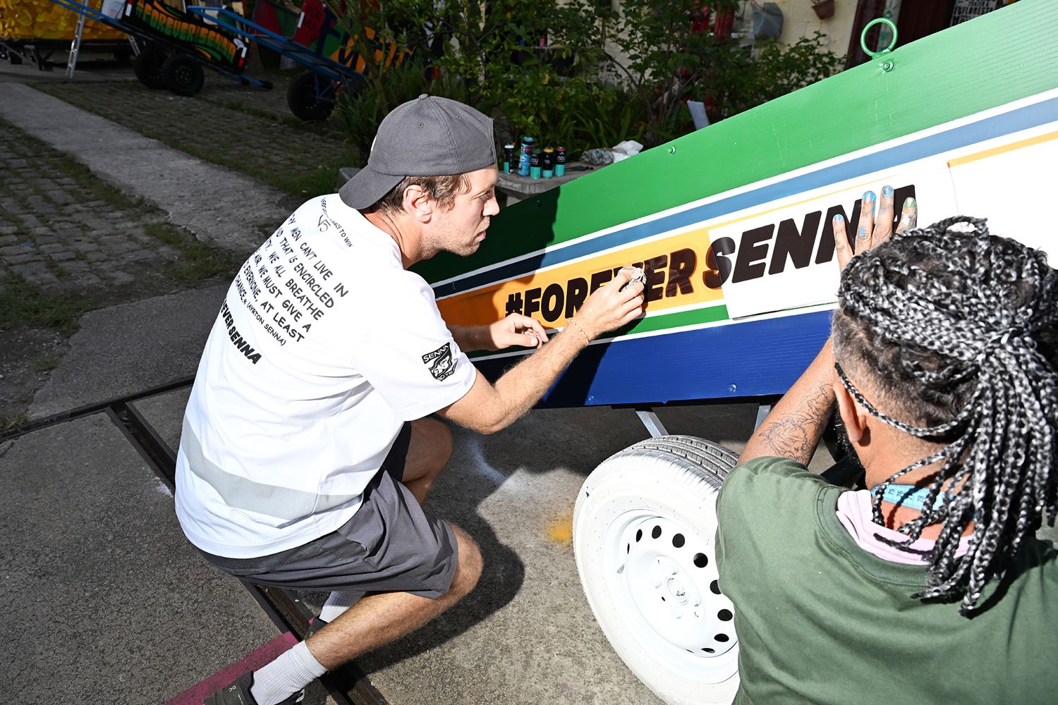 Vettel: “Well, it’s an event, but I think it’s also a sculpture or a piece of art, so it’s been a lot of work and obviously continuing to tell the story from Imola, 30 years after Ayrton’s fatal accident, really to celebrate his legacy, that’s the idea. Somebody that was obviously very popular for what he did on track, but also had a lot of courage to speak up outside the track and speak up for important things, trying to push the boundaries in his home country, improving the situation for kids when it comes to education, fighting poverty. So yeah, I think I took a lot of inspiration from that and we thought of what we can do to try and create a symbol so that the legacy lives on. And obviously, I’ve been quite aware of the situation in the world when you look at the environment, but social topics and the environmental topics are very closely linked to each other.