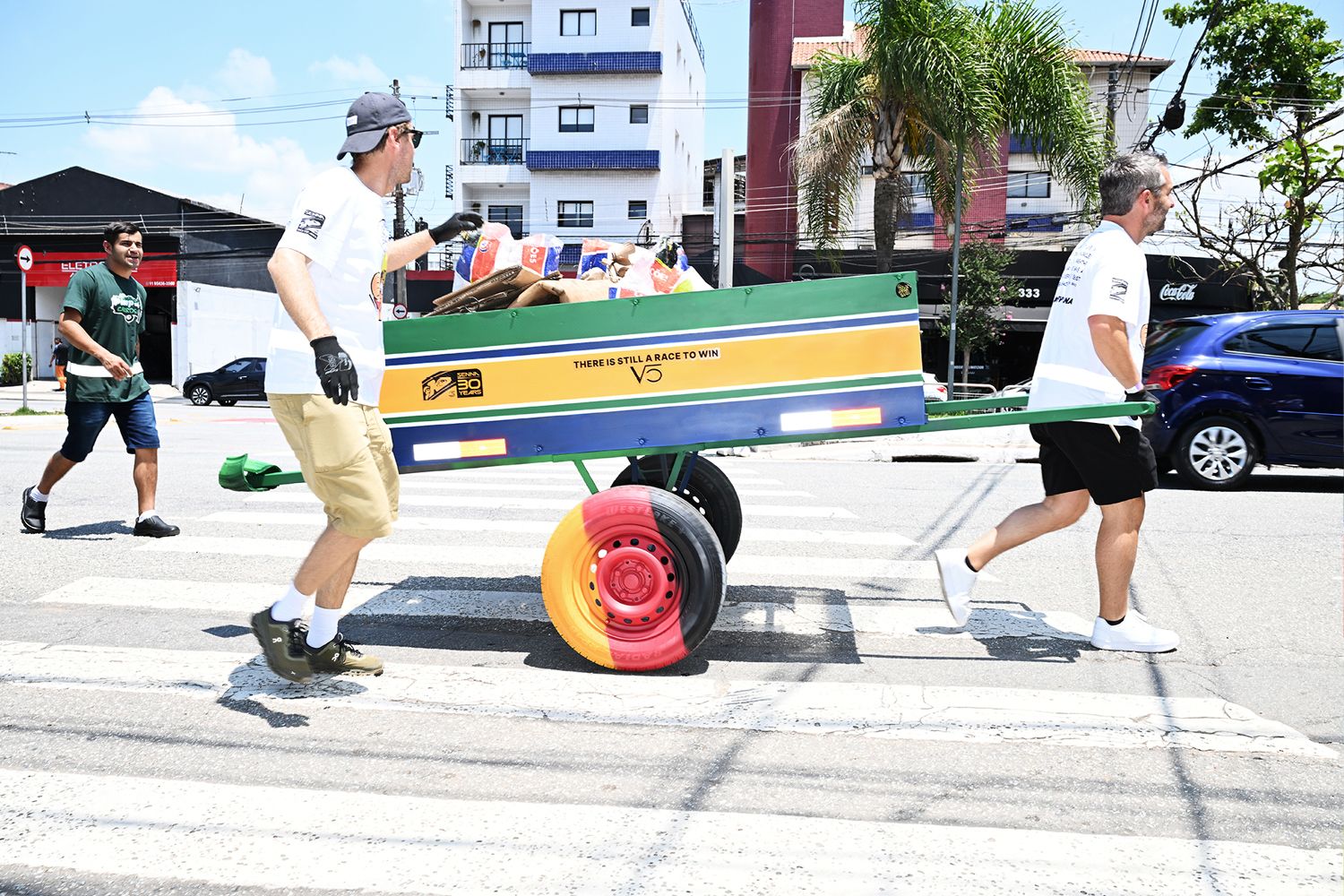 The waste picker plan was ideated and executed where Vettel and his team build a giant helmet – made of all the items they collected in and around Sao Paulo. It was ready on Thursday of the Brazil GP weekend and they used Senna’s helmet colours of yellow, green and blue.