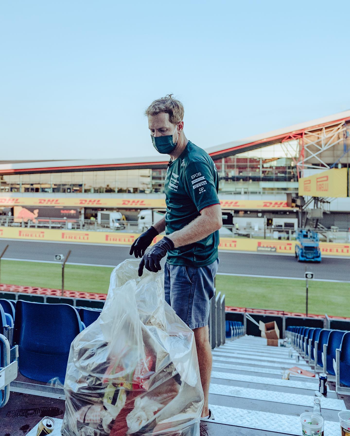 Here’s some photos from Sebastian Vettel cleaning up the stands: