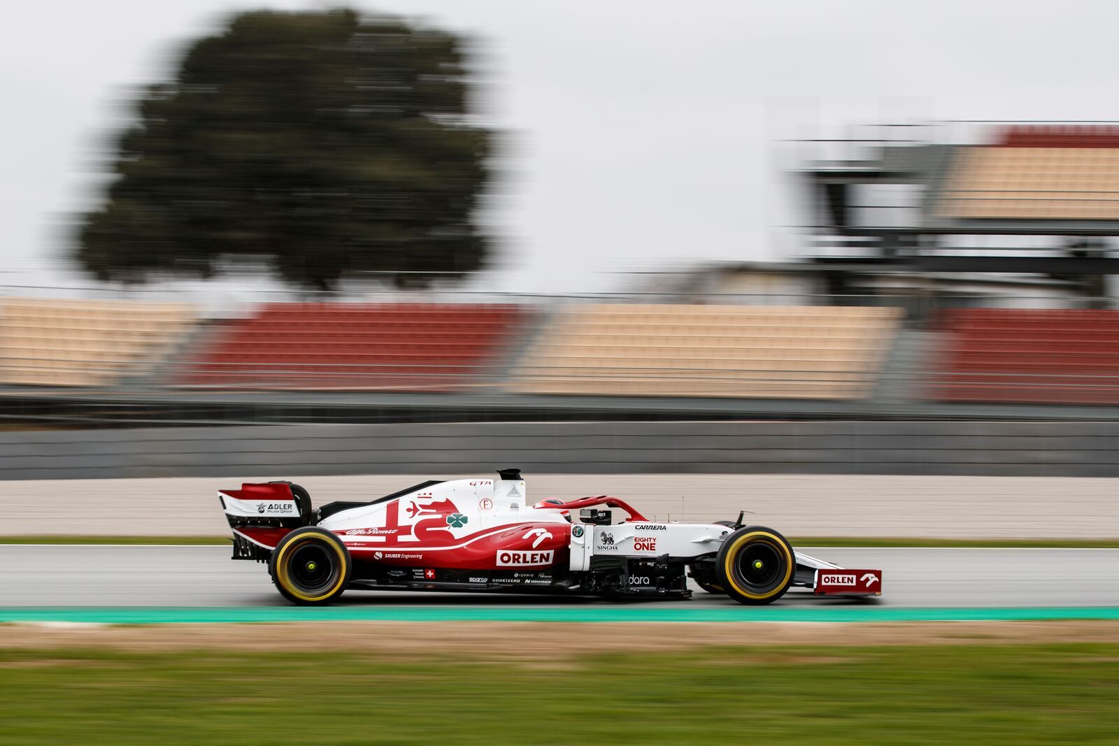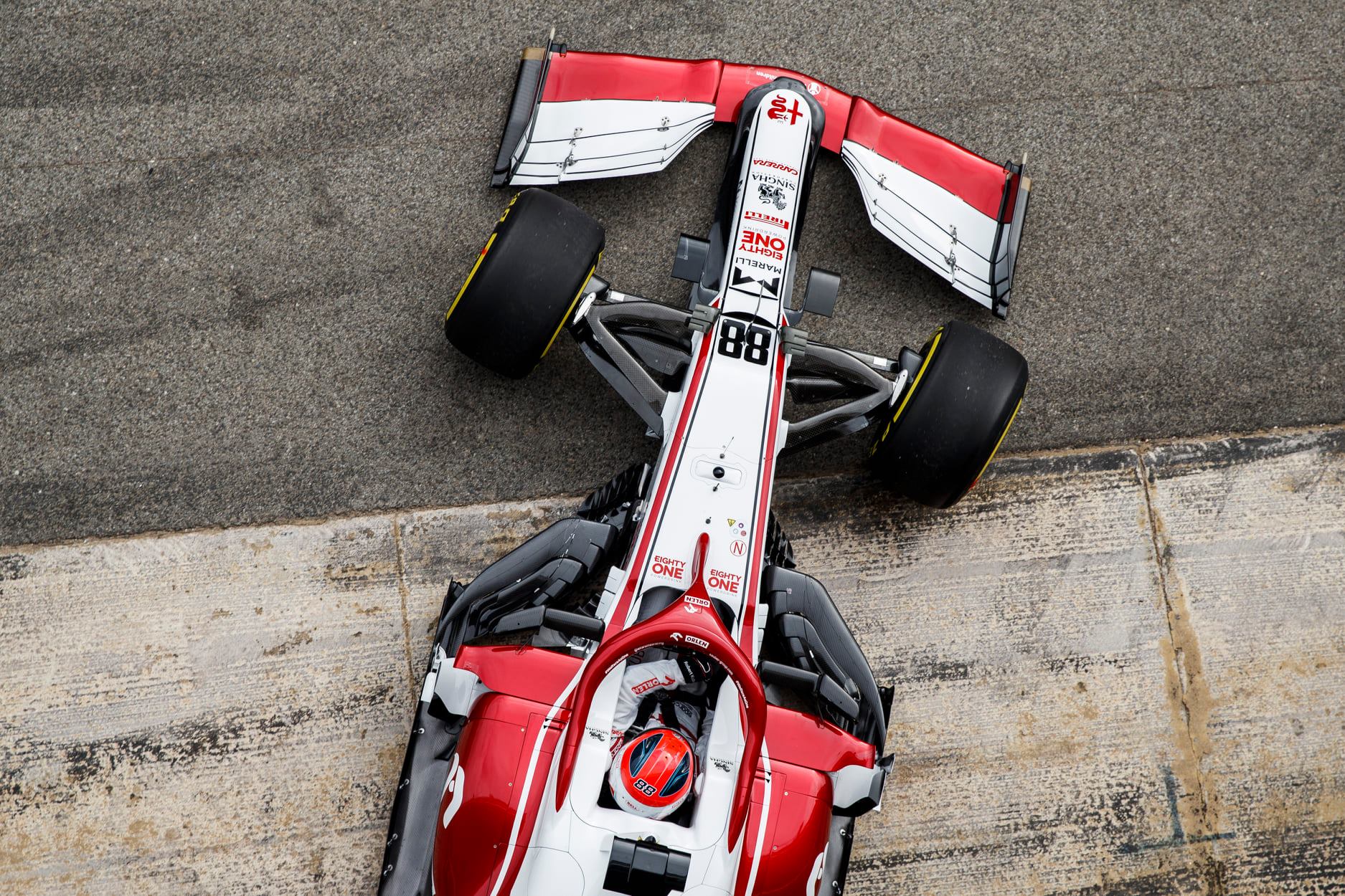 With the unveiling completed earlier in the week in Poland, Alfa Romeo had its first track run at Barcelona on Friday, with reserve driver Kubica in action in the C41 albeit using the demonstration Pirelli F1 tyres. The Polish driver completed 29 laps on the short layout.