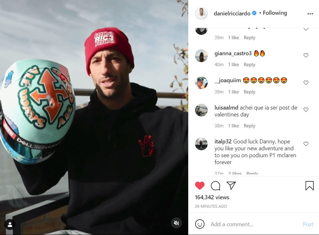 Here’s video of Daniel Ricciardo unveiling his 2021 helmet: https://www.instagram.com/p/CLSDV2EpSZx/