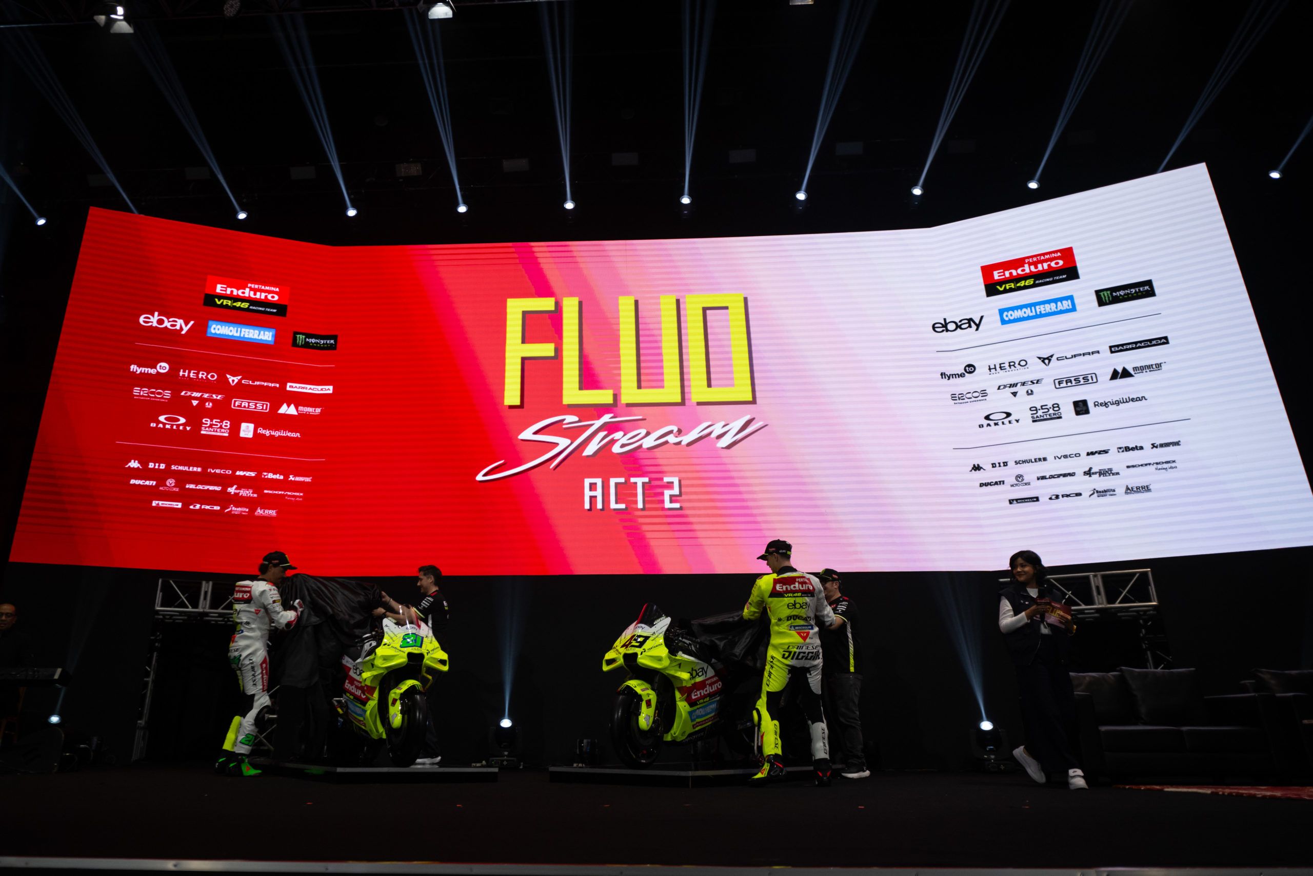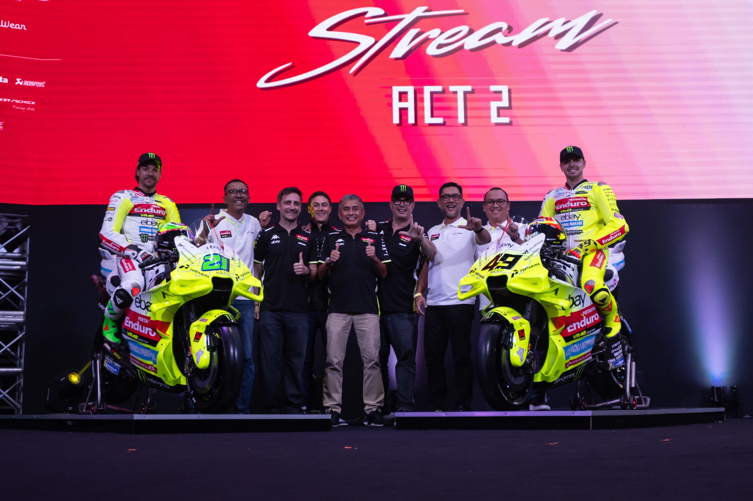 And it was all: fluo! Bright yellow continues to take centre stage for Pertamina Enduro VR46 Racing Team in 2025, with their new livery revealed on Saturday at the Nusah Inda Theater in Jakarta, Indonesia. There, Fabio Di Giannantonio and new teammate Franco Morbidelli took the covers off their new livery in front of more than 600 guests.