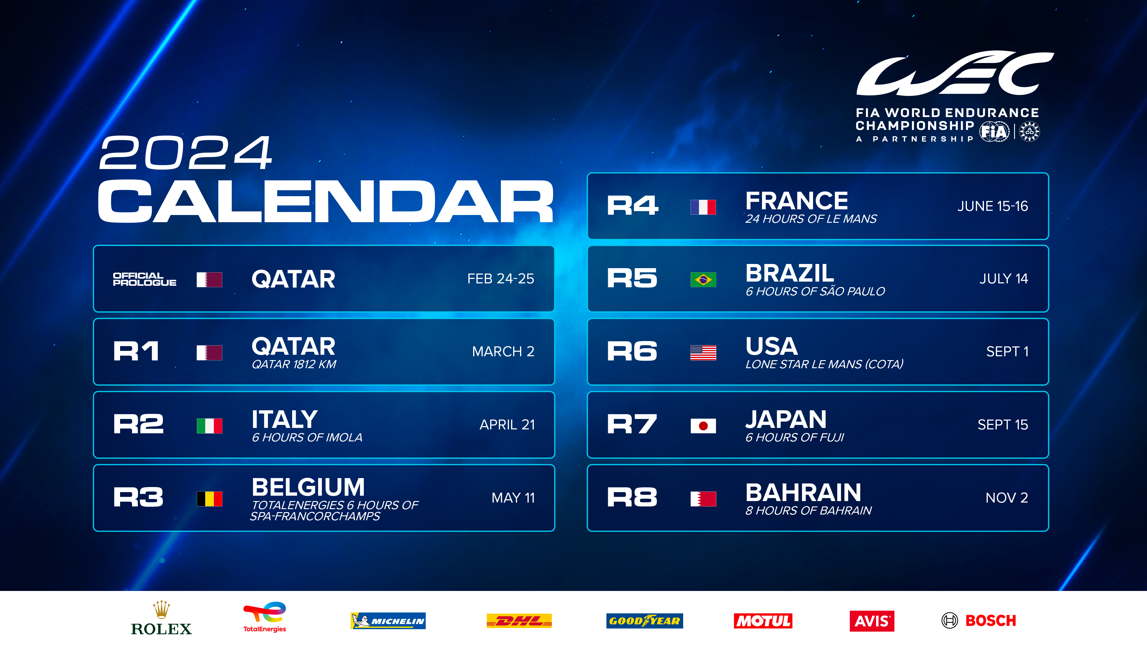 The FIA WEC has revealed a provisional 2024 calendar with eight rounds as Qatar joins in along with Imola.